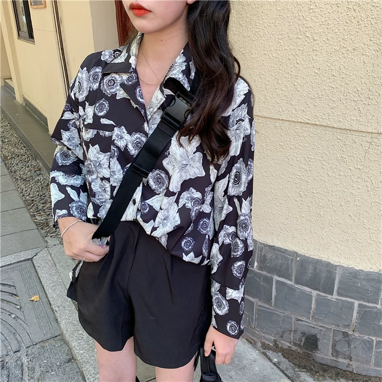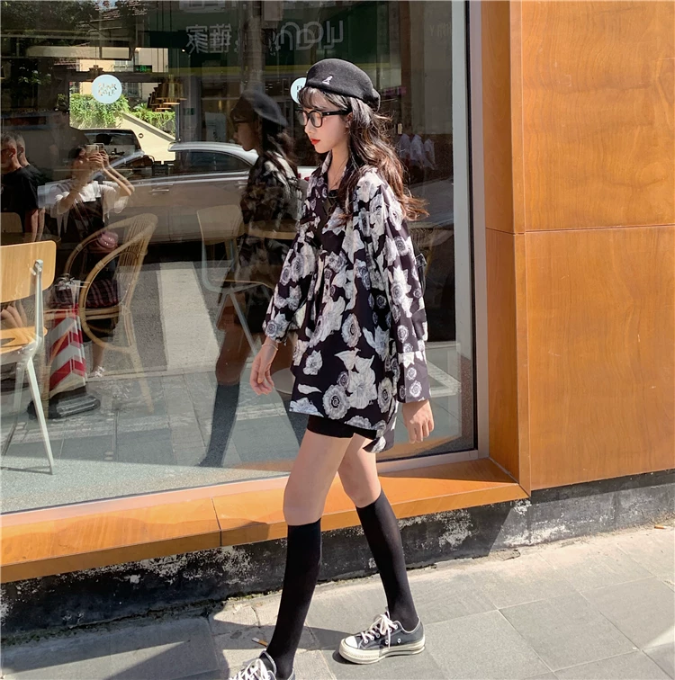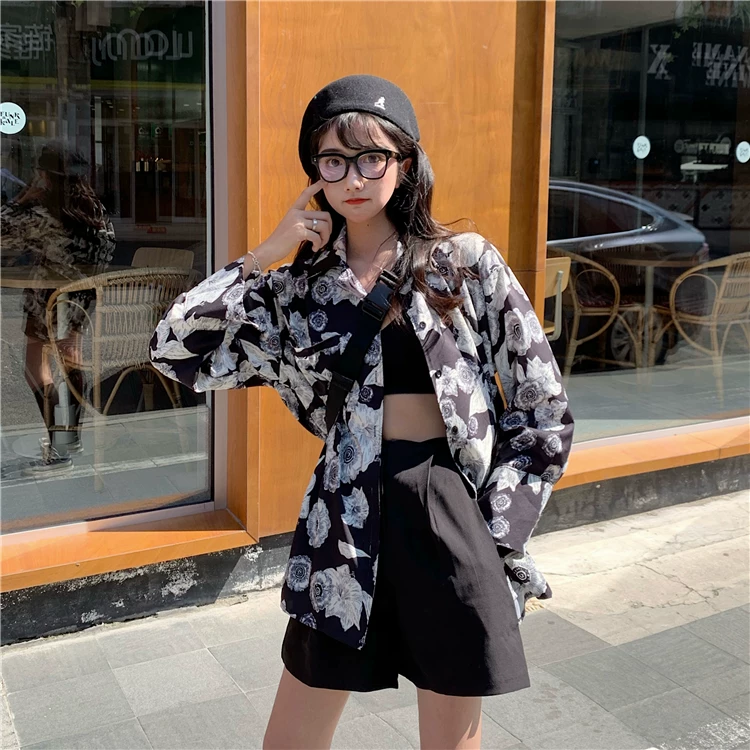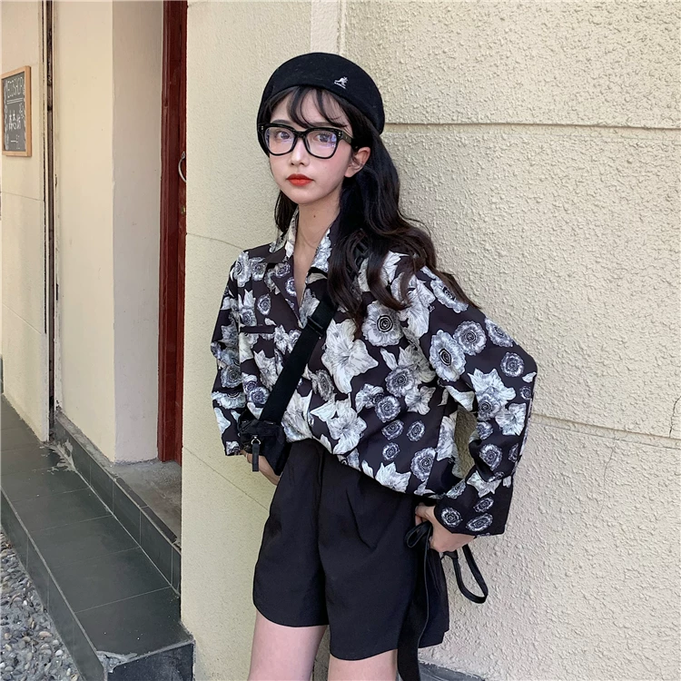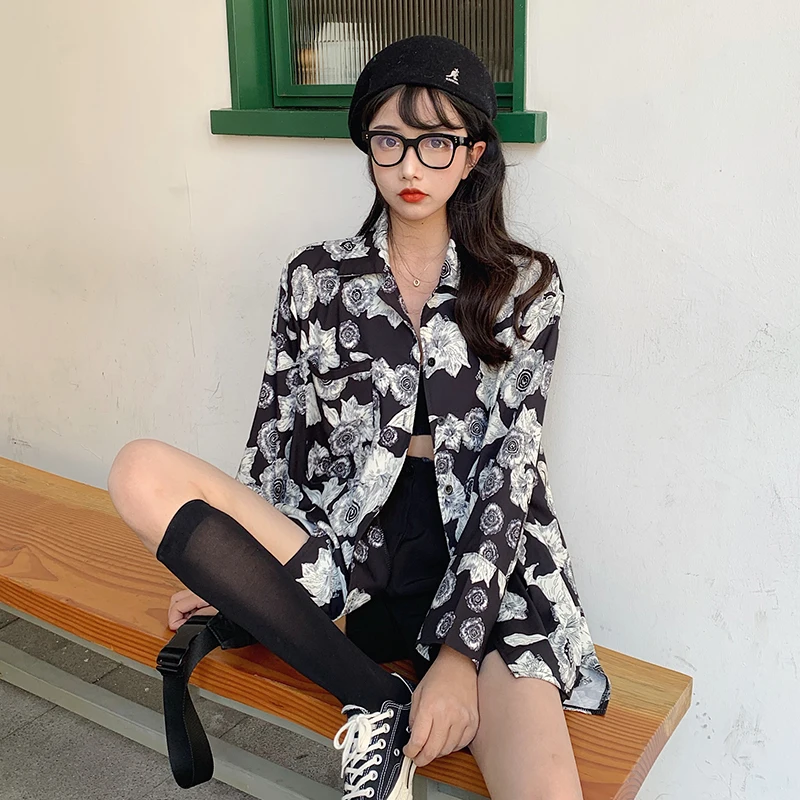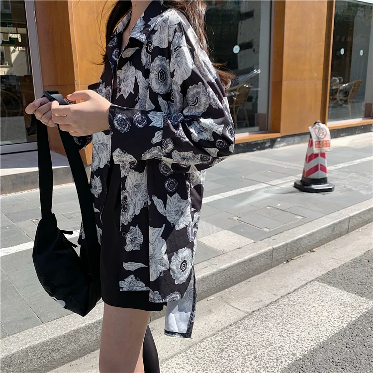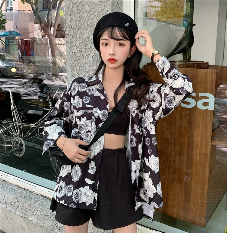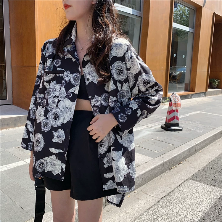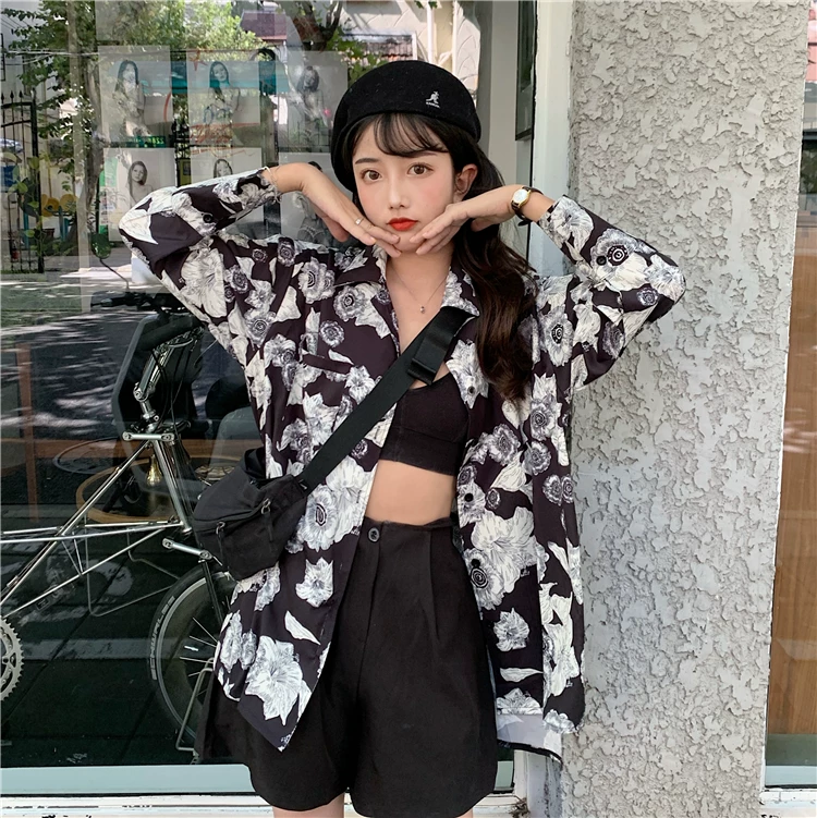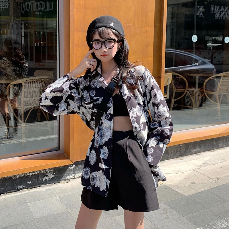 Рубашка женская летняя свободная в стиле Харадзюку, с цветочным принтом