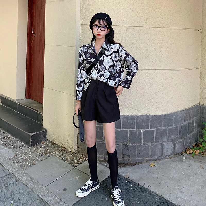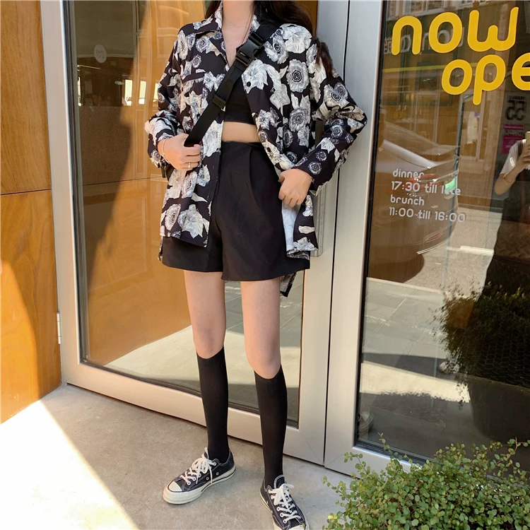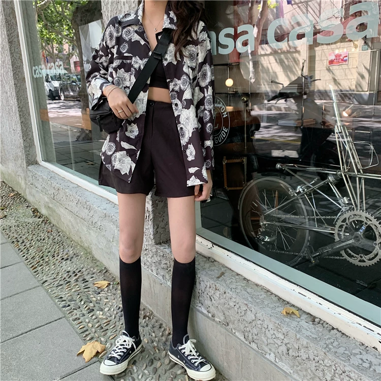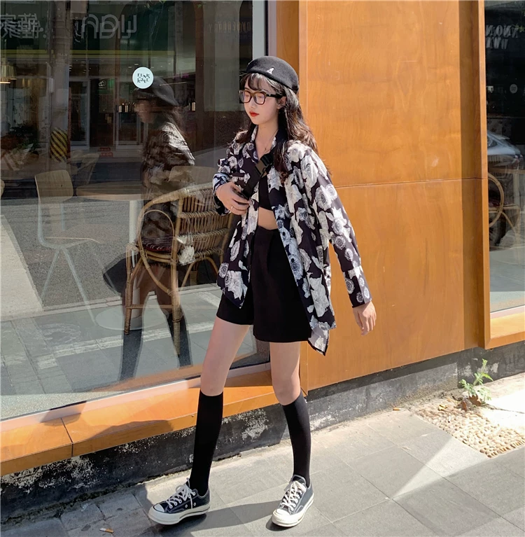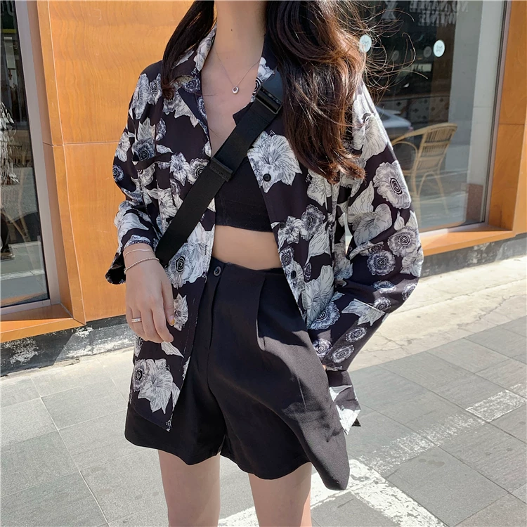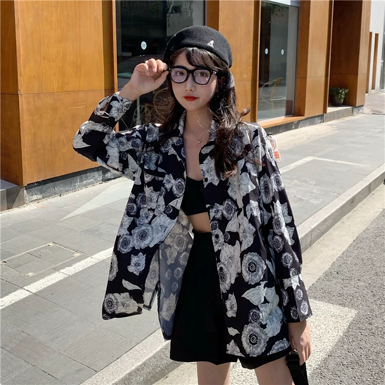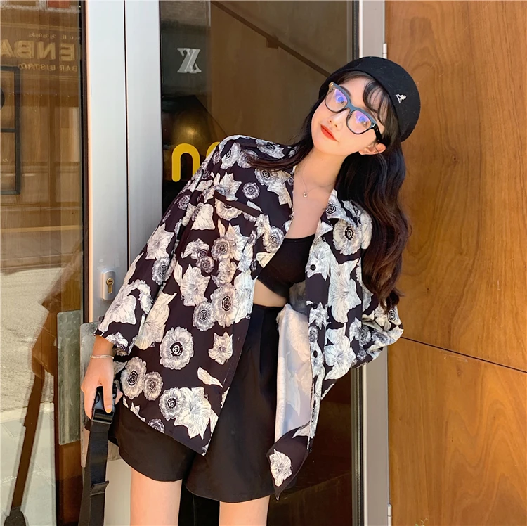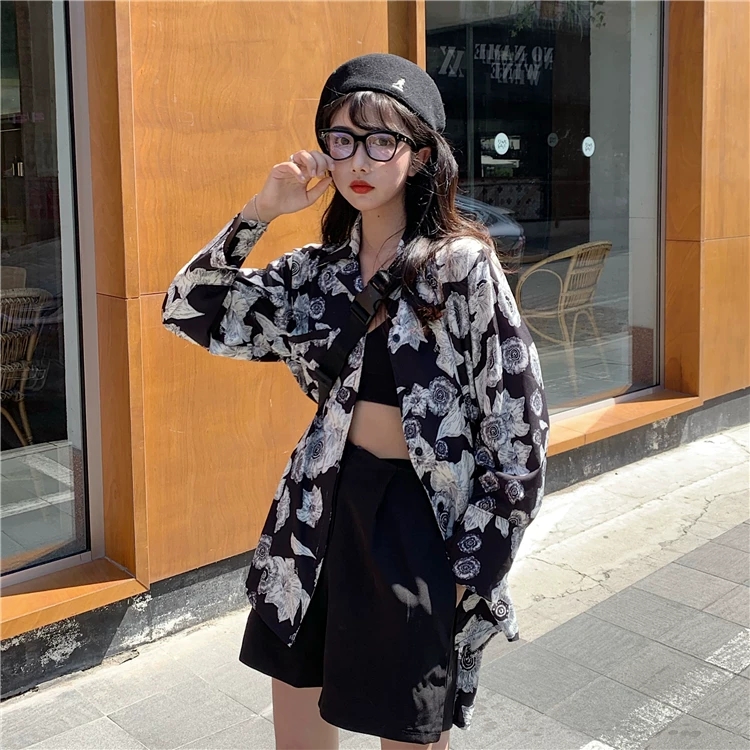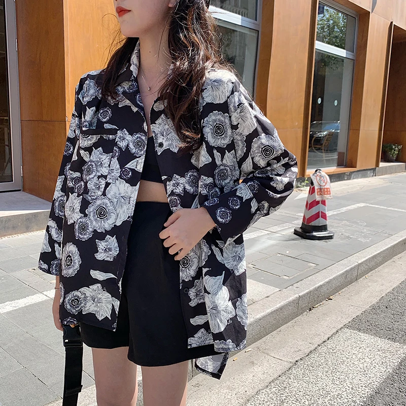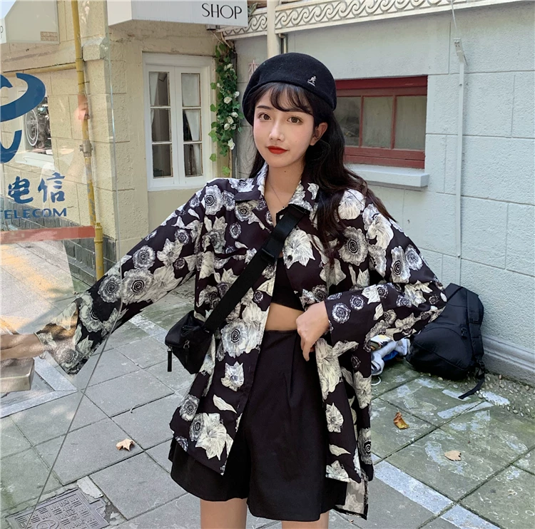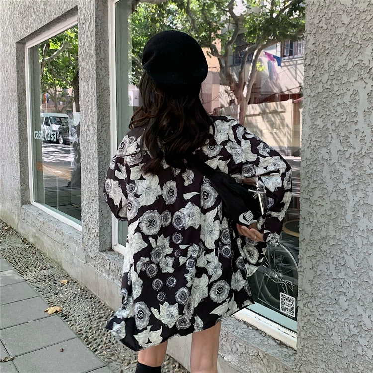 Рубашка женская летняя свободная в стиле Харадзюку, с цветочным принтом