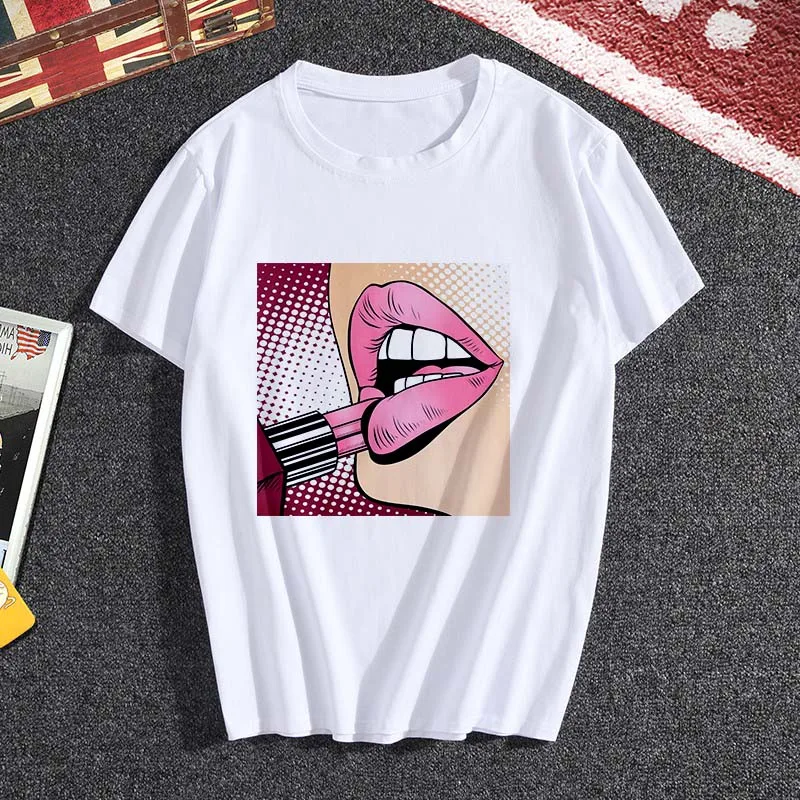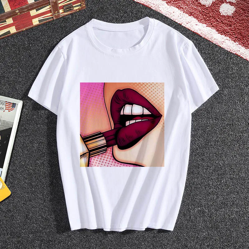Женская футболка с принтом губ и губной помады, Женская Футболка Ha...