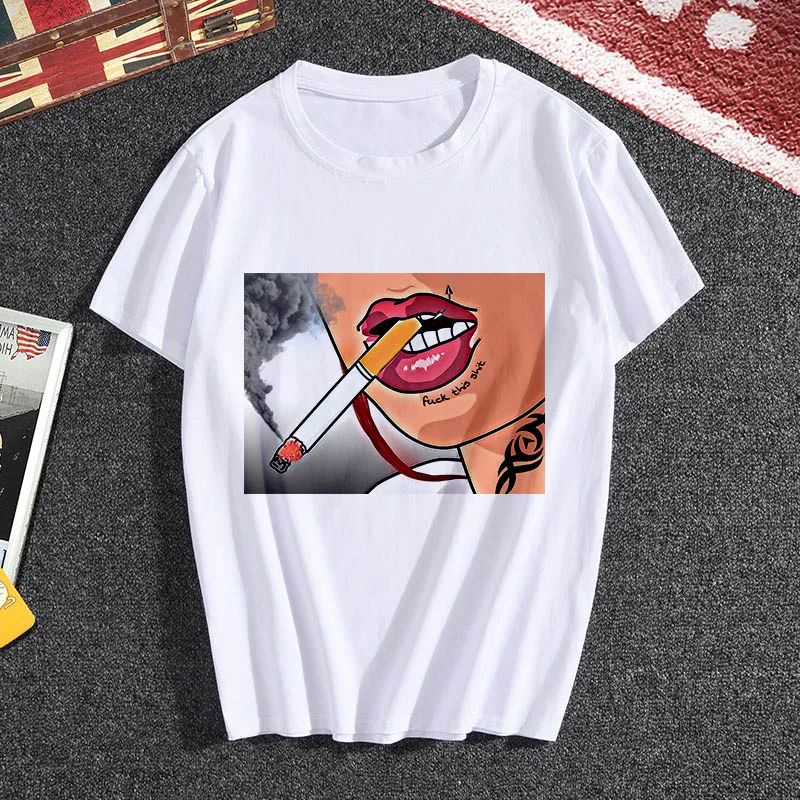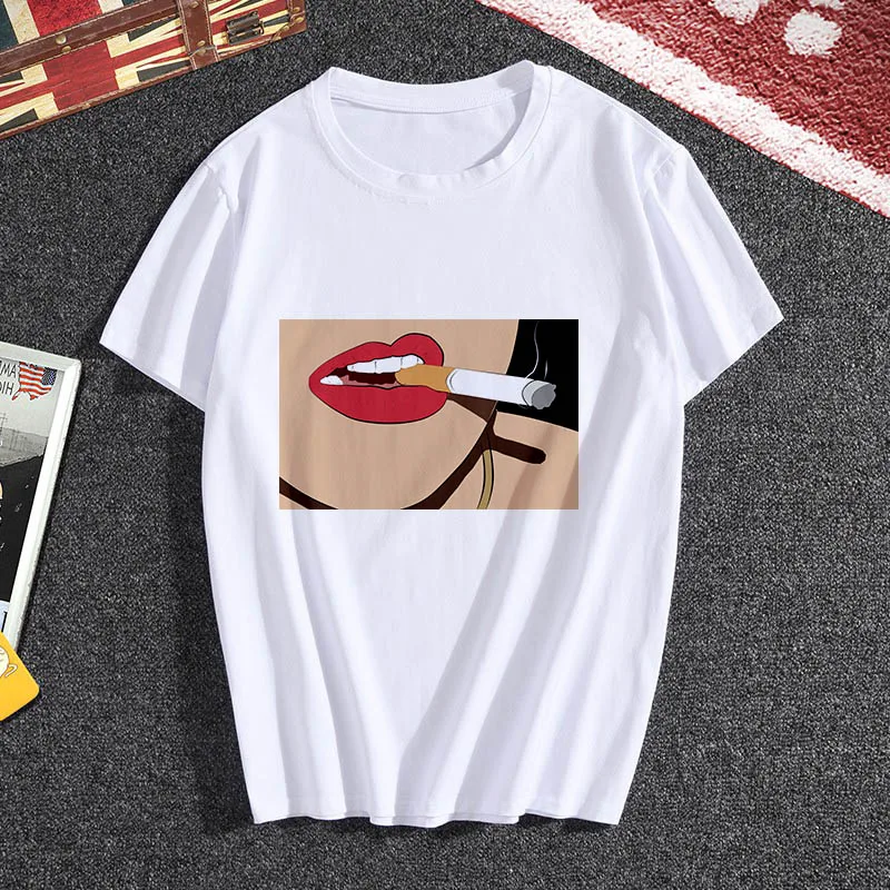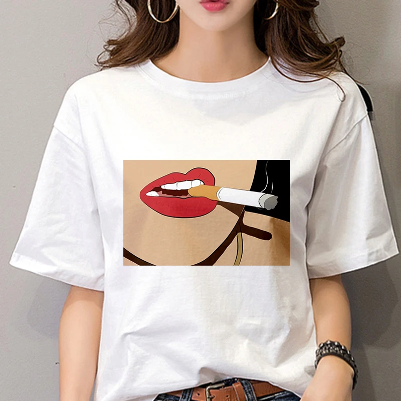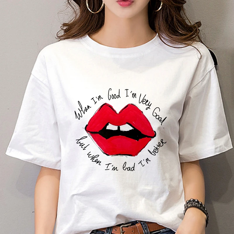 Футболка женская в стиле Харадзюку, пикантная Модная тонкая рубашка с коротким рукавом, с принтом губ, лето 2019
