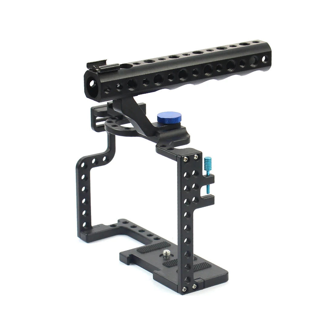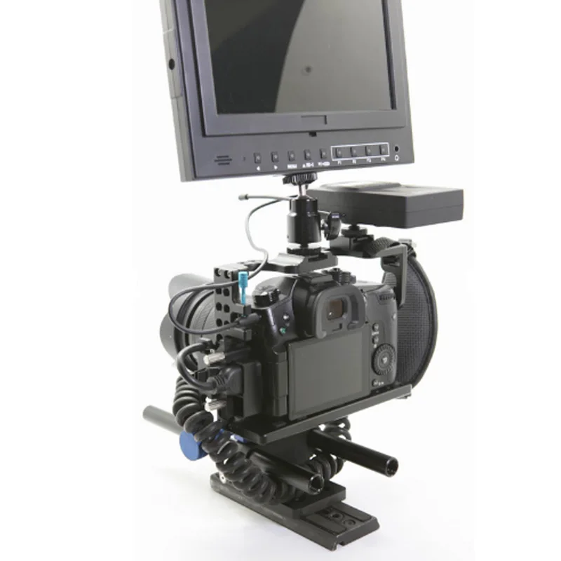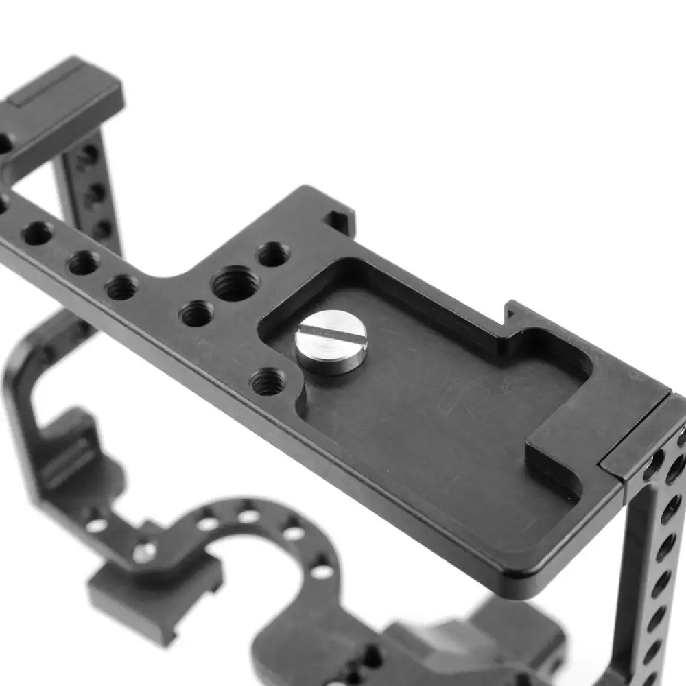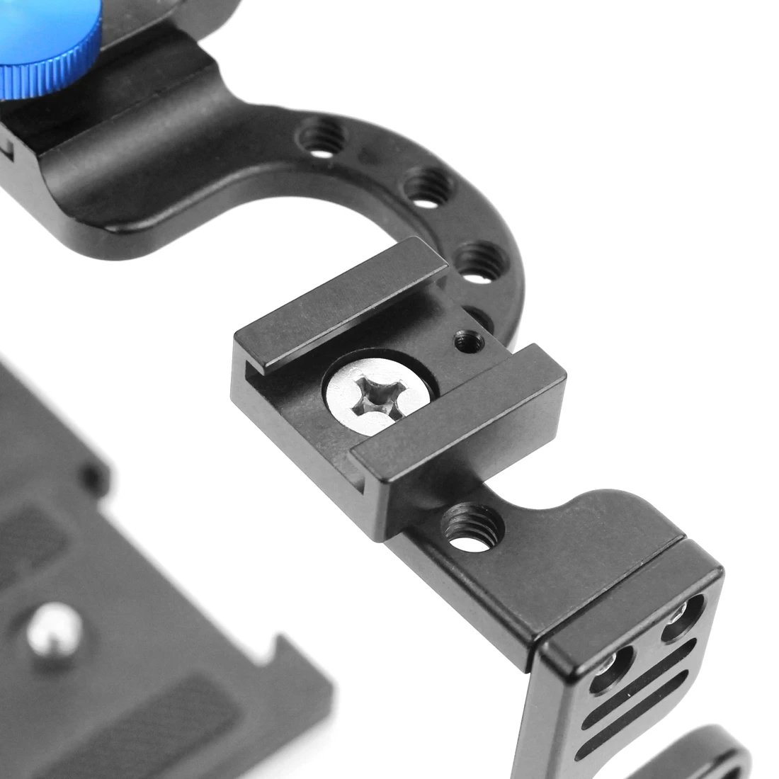 1. Поставляется с двумя креплениями для горячего/холодного башмака, что позволяет одновременно устанавливать светильник КУ и микрофон. Он также имеет конструкцию экономии кабеля HDMI. 2. Верхняя ручка и ручной ремешок позволяют вести съемку с ангелом и съемку в стиле DV. 3. Материал: алюминиевый сплав + щебень + пластик 4,1/4 "резьбовое отверстие на клетке. 5. Компактный дизайн, стержневая система хорошо сочетается с дополнительным пленочным оборудованием