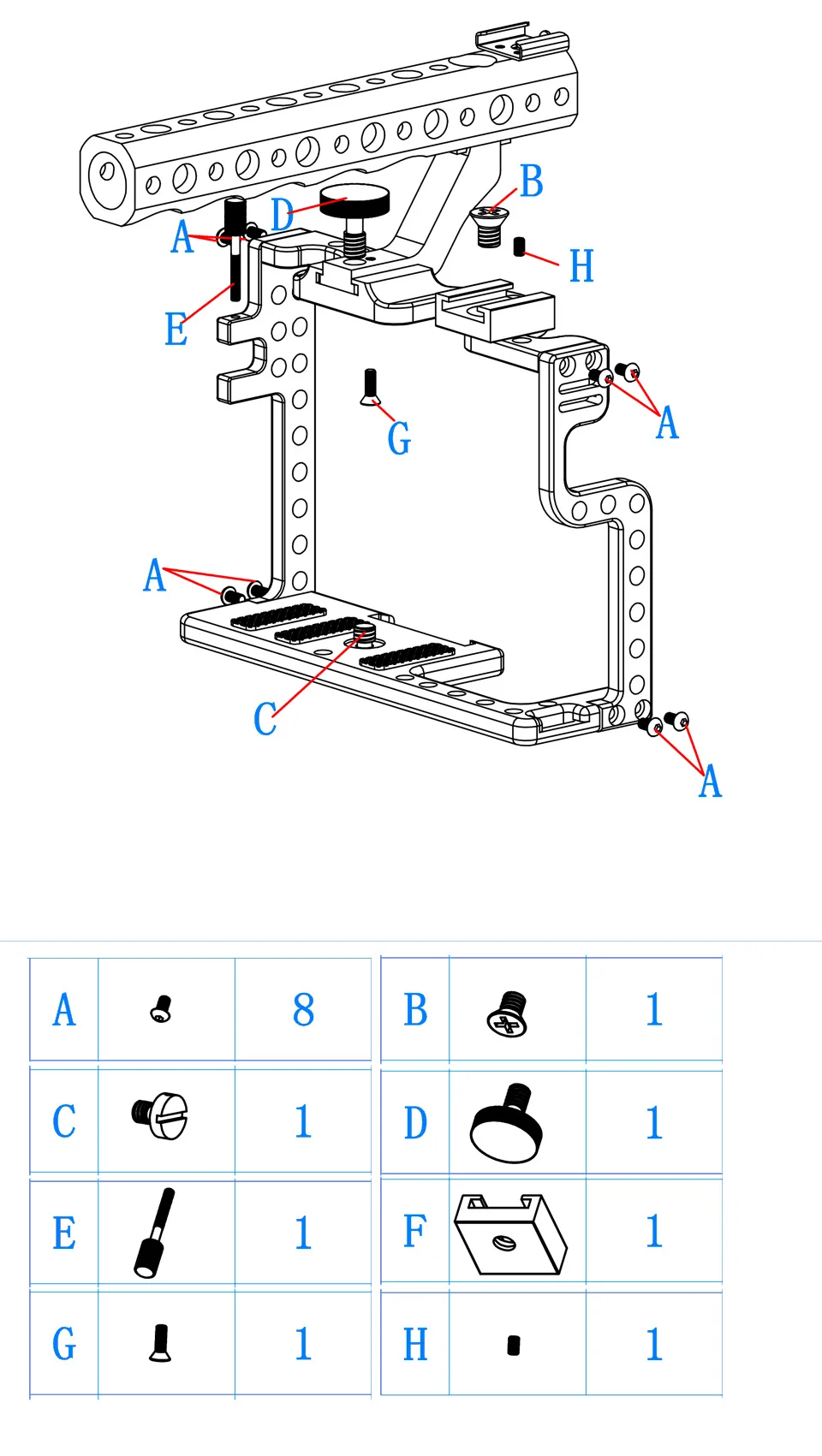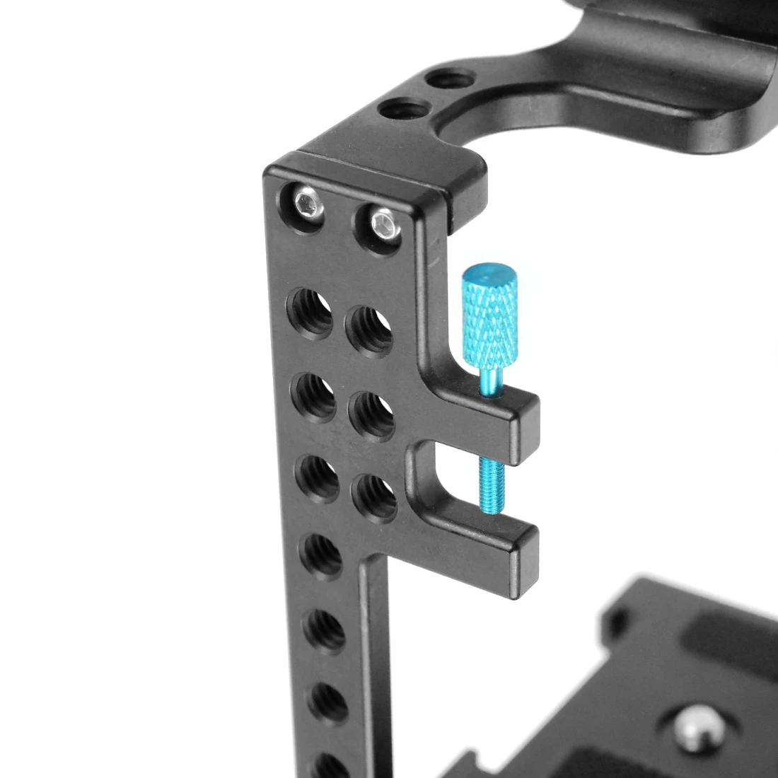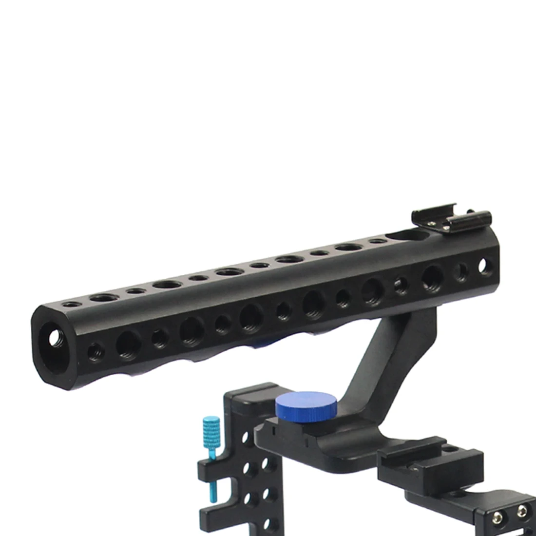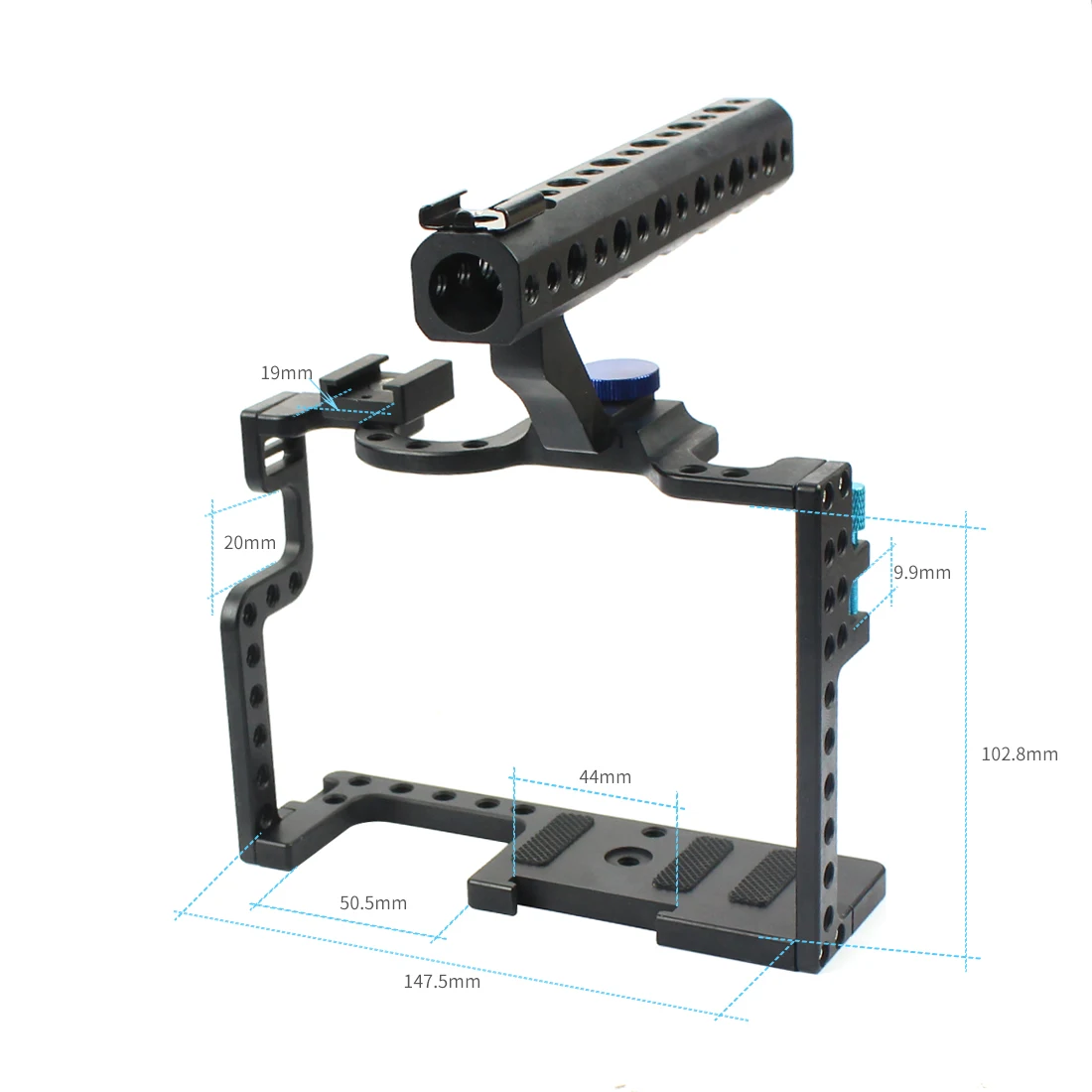 1. Поставляется с двумя креплениями для горячего/холодного башмака, что позволяет одновременно устанавливать светильник КУ и микрофон. Он также имеет конструкцию экономии кабеля HDMI. 2. Верхняя ручка и ручной ремешок позволяют вести съемку с ангелом и съемку в стиле DV. 3. Материал: алюминиевый сплав + щебень + пластик 4,1/4 "резьбовое отверстие на клетке. 5. Компактный дизайн, стержневая система хорошо сочетается с дополнительным пленочным оборудованием