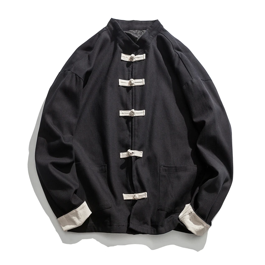 Китайское традиционное ретро пальто, мужское осеннее пальто с длинным рукавом, костюм Тан, куртка с воротником-стойкой и пряжкой, Восточная хлопковая рубашка для кунг-фу