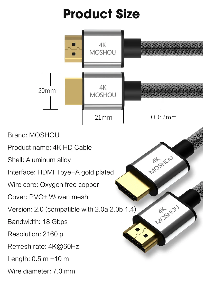 MOSHOU 4K @ 60Hz 2,0 HDMI-совместимый с HDMI кабель 2.0b 1,4 Ethernet кабель для PS4 проектор HD LCD Apple TV компьютер