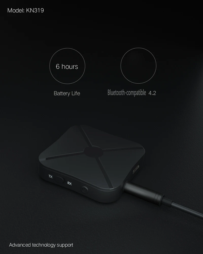 4. Переключение между режимами передатчика и приемника с простым щелчком переключателя. Легко подключить, используя передовые технологии Bt и 3,5 мм аудио кабель (все указанные аккумуляторы входят в комплект поставки).