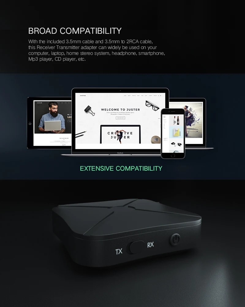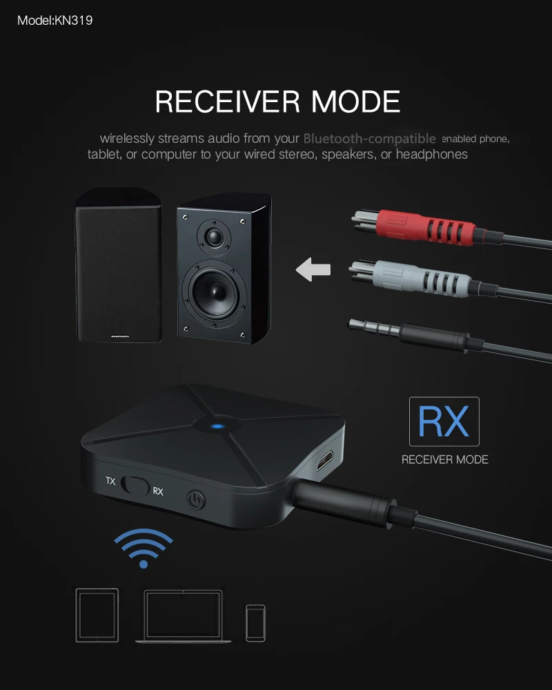6. Широкая Совместимость: с помощью прилагаемого 3,5 мм кабель и 3,5 мм до 2RCA кабель, этот приемник передатчик адаптер может широко использоваться на вашем компьютере, ноутбук, домашней стереосистеме, бумажное полотенце, кабель для наушников, смартфон, mp3-плеер, CD-плеер и т. Д.