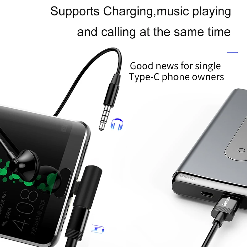 Адаптер Baseus USB-C3,5 мм для Xiaomi Mi 9, 8, Huawei Mate 30, P30 ...