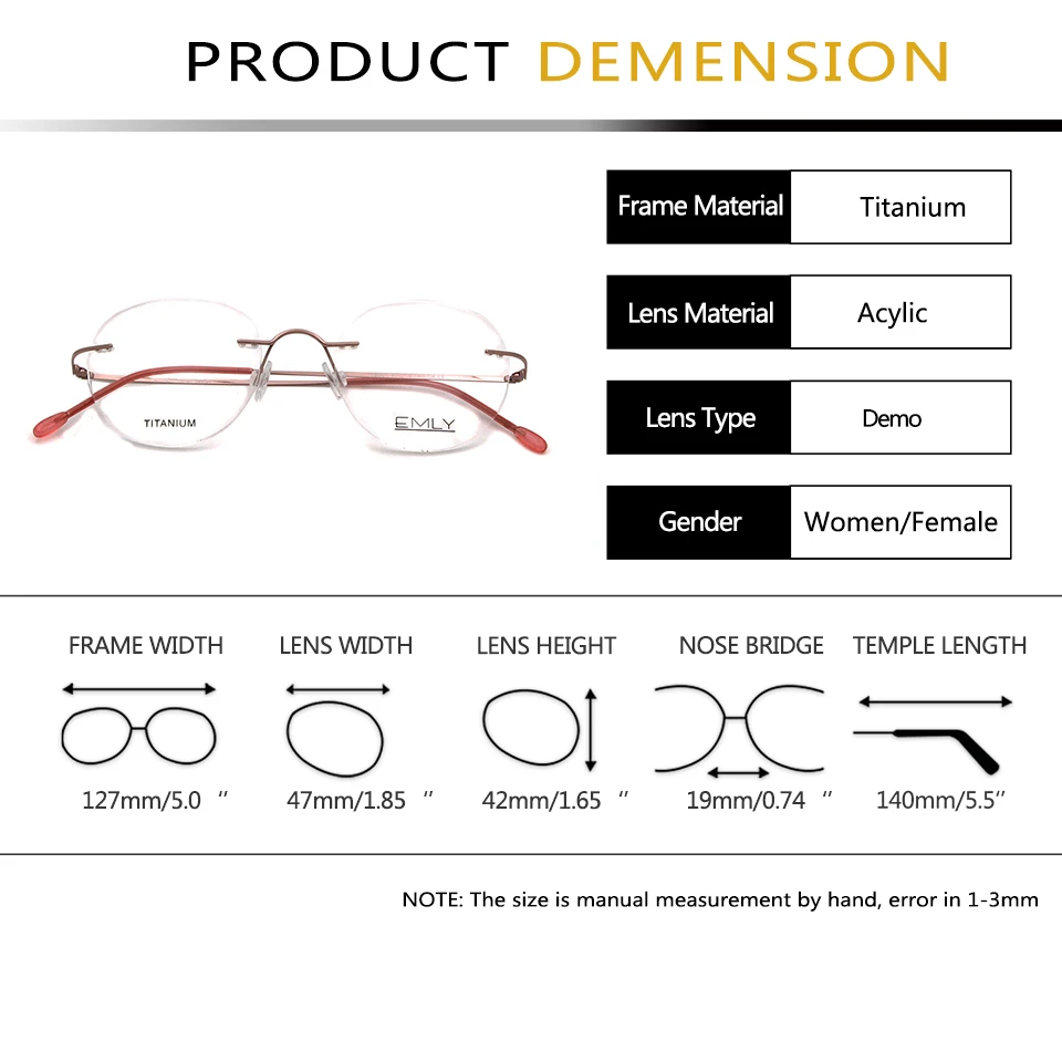 Титановая оправа для очков без оправы для женщин и мужчин, ультралегкие круглые очки по рецепту, Женские оправы для очков без оправы для близорукости