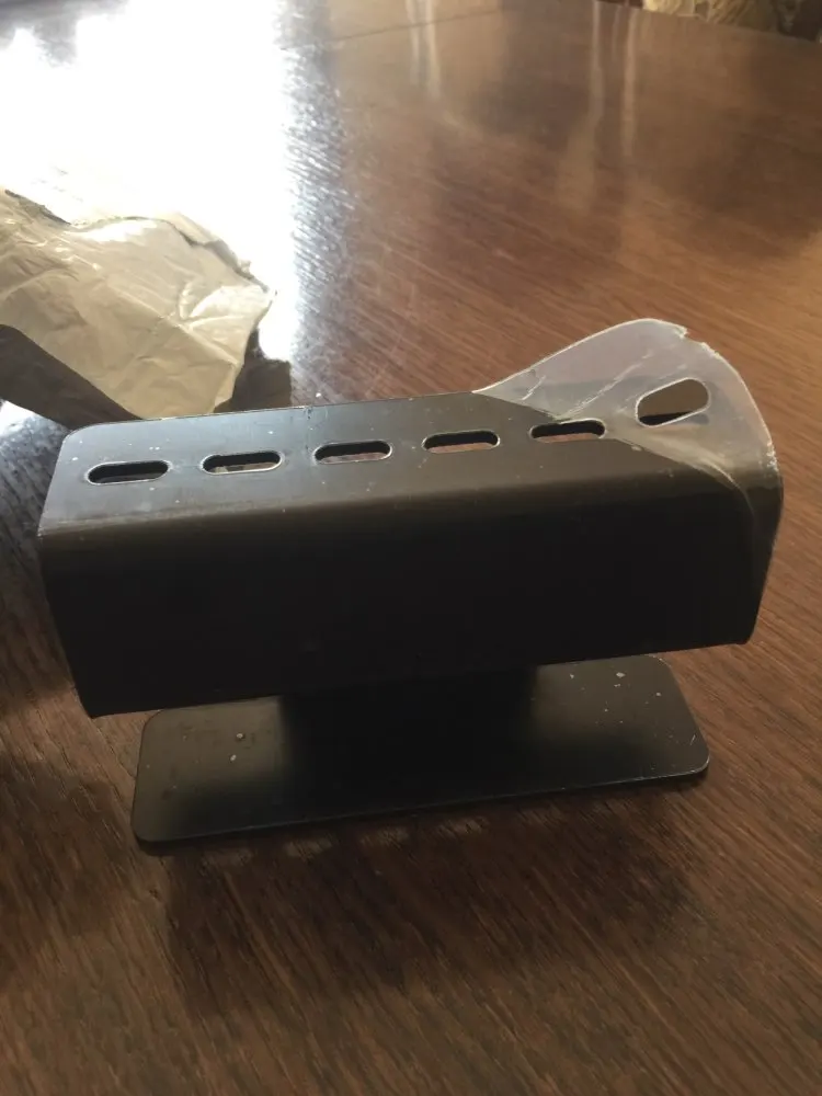 Прошло некоторое время, чтобы прийти, но точно так же, как показано на картинке, просто пластик, я использовал двустороннюю ленту, чтобы держать ее на моем столе