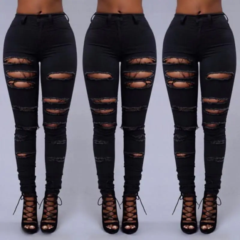 Узкие джинсы для женщин, новинка, модные летние выцветающие рваные узкие джинсы, сексуальные джинсы с дырками, белые черные джинсы-карандаш с высокой талией