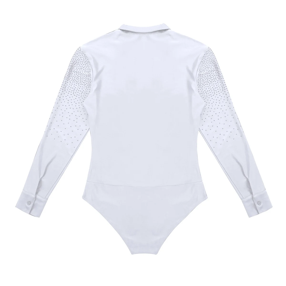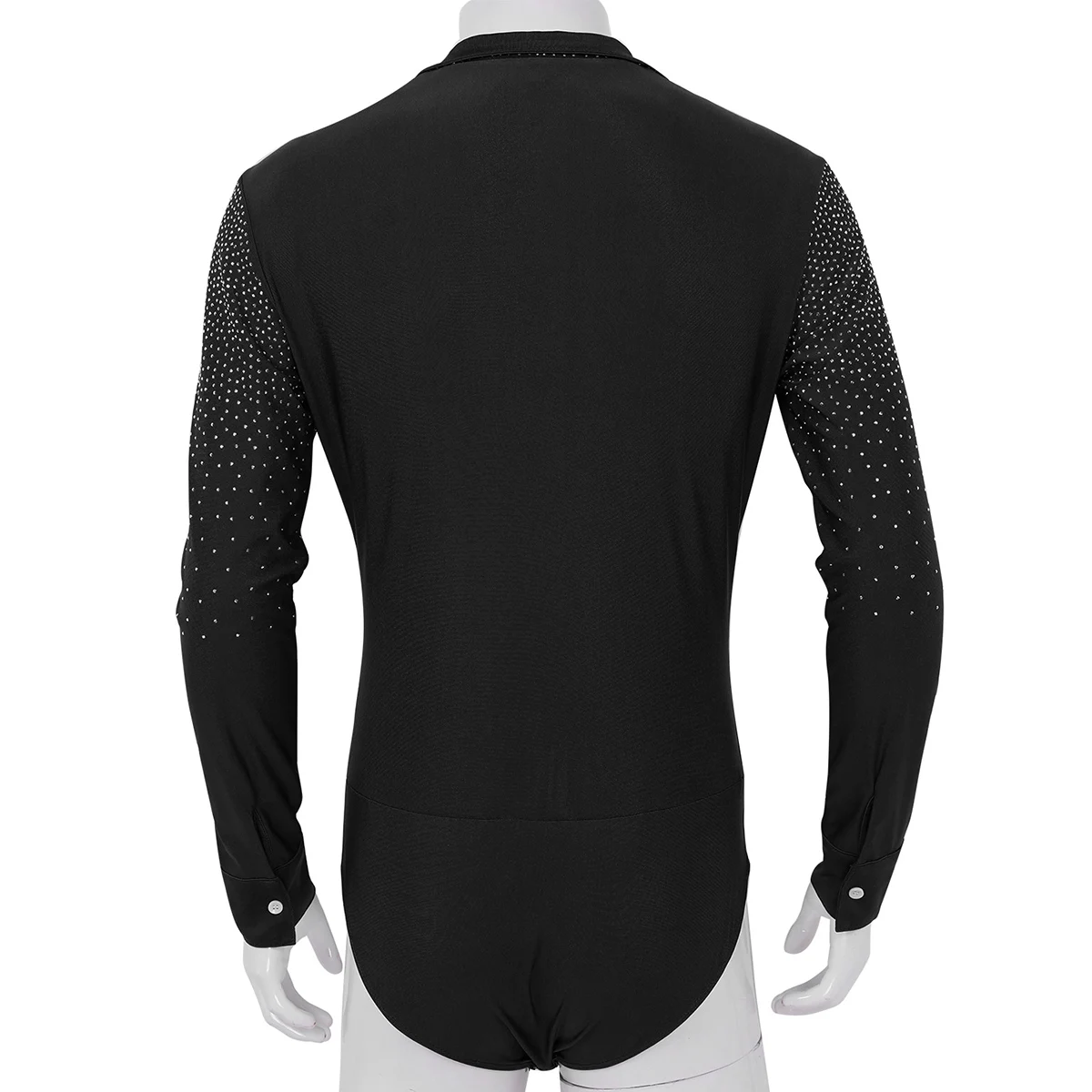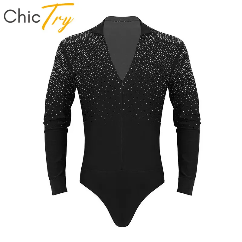 ChicTry взрослые блестящие стразы с V-образным вырезом с длинным рукавом для танцев бальные танго Румба мужские костюмы для латиноамериканских танцев трико Рубашка Боди