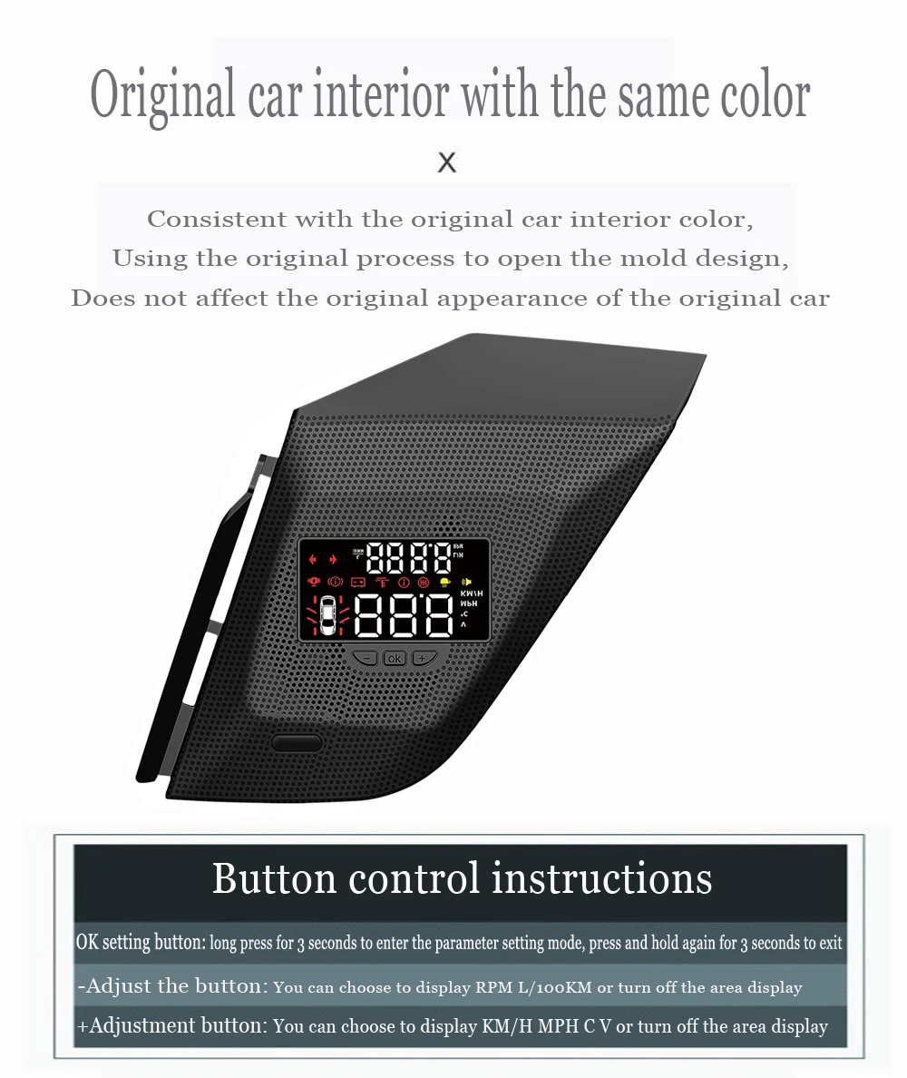 Это позволяет нам отслеживать все виды данных на приборной панели транспортного средства и может захватывать их в режиме реального времени, не заглядывая вниз, избегая дорожных аварий, вызванных отвлечением во время вождения.