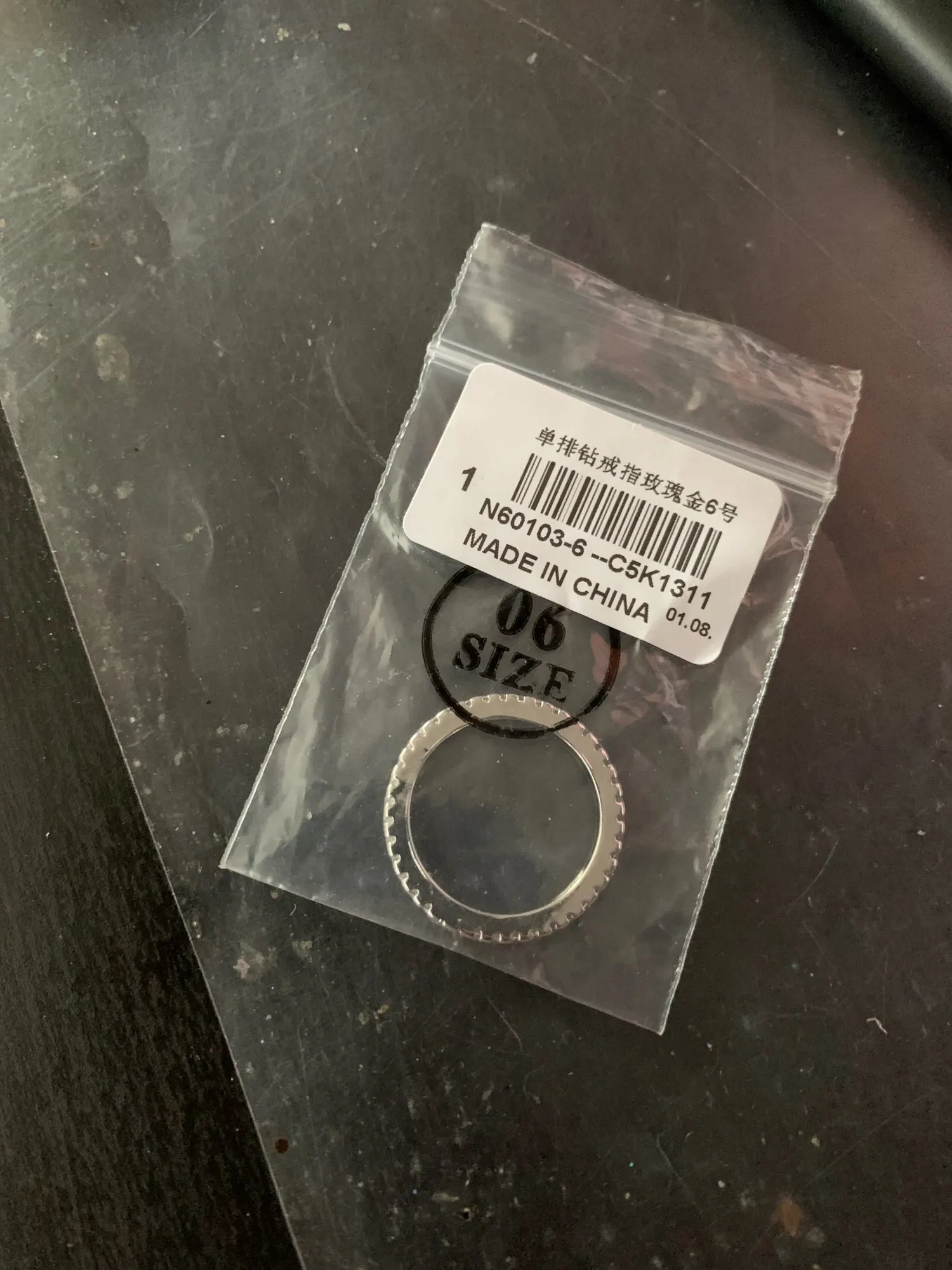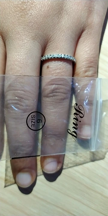 Товар пришёл за три недели. Колечко прям как на картинке, блестит. 6 размер большеват для 17 русского, но не критично, с пальца не спадает, но на некоторых пальцах крутится, но колечко просто шикарное, поэтому с удовольствием буду носить на среднем