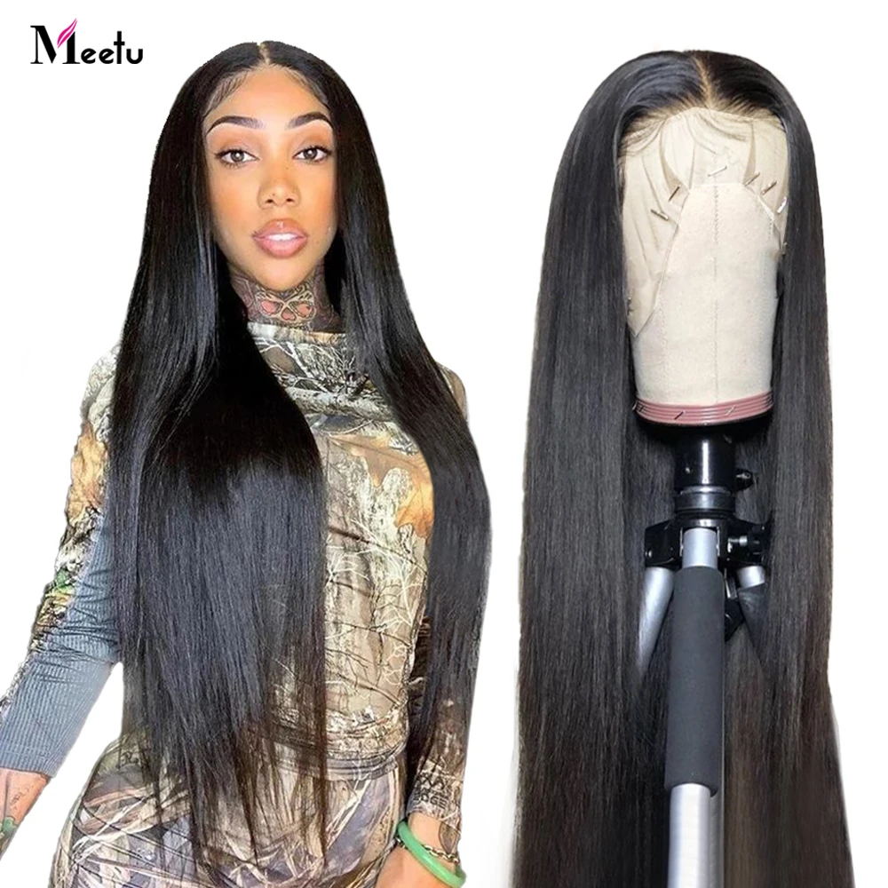 【Meetu】 прямые HD прозрачные кружевные фронтальные парики