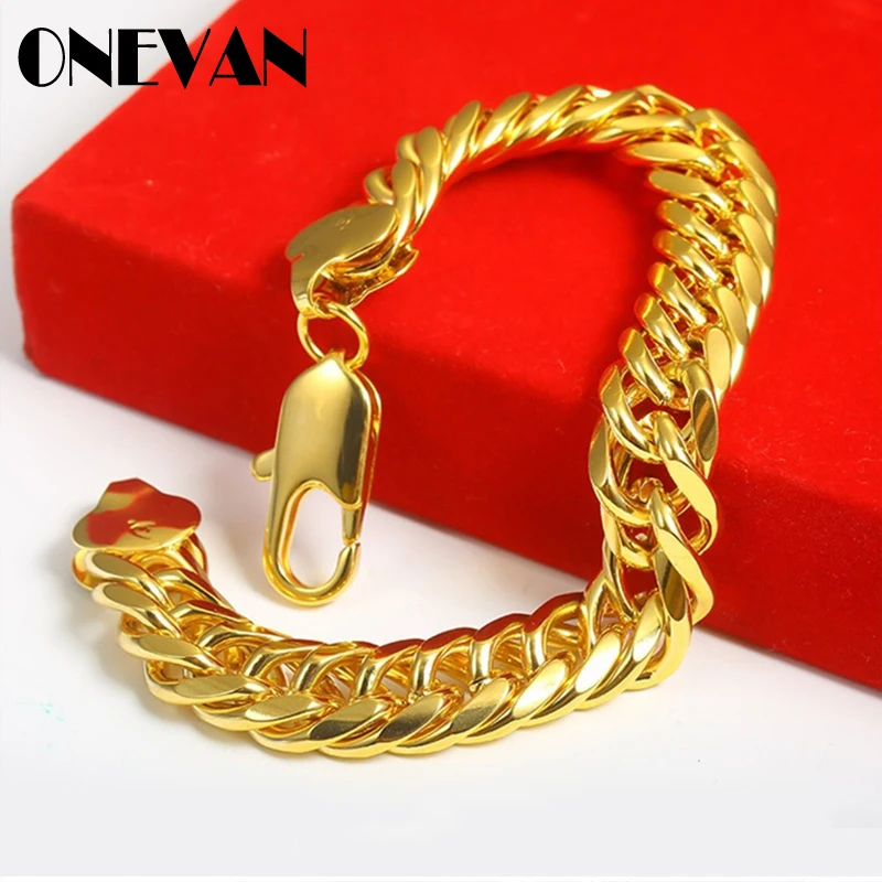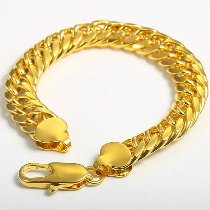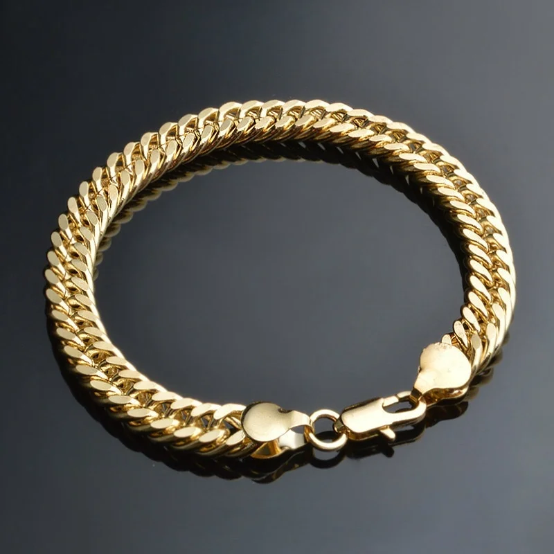 Браслет-цепочка мужскойженский, с кубинским плетением, с позолотой