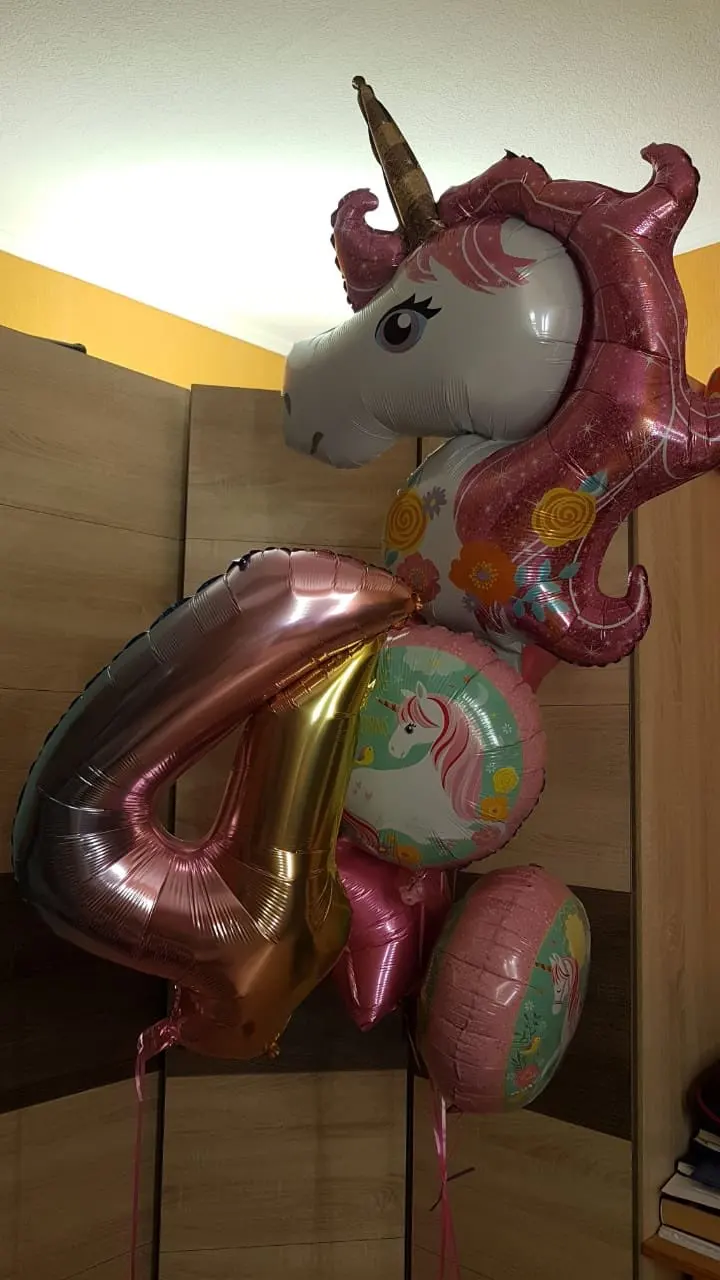 Супер милые воздушные шары для любителей единорога. Очень красивые цвета и все подошло нетронутым. Очаровательная девочка!