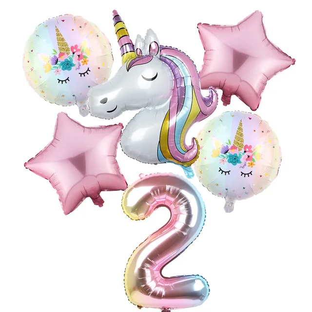 Воздушный шар в виде единорога, градиент, 32 дюйма, 6 шт.лот, цифра 1, 2, 3, 4, 5, 6, для мальчиков и девочек, для дня рождения, свадьбы, украшения