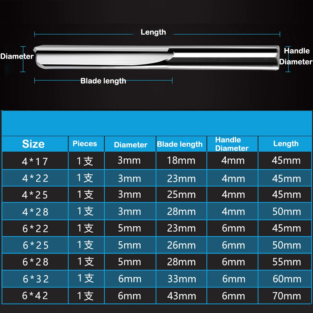 Фреза фрезерная с двумя зубьями, прямые биты для работ по дереву и железу, с круглым хвостовиком, 6 мм4 мм