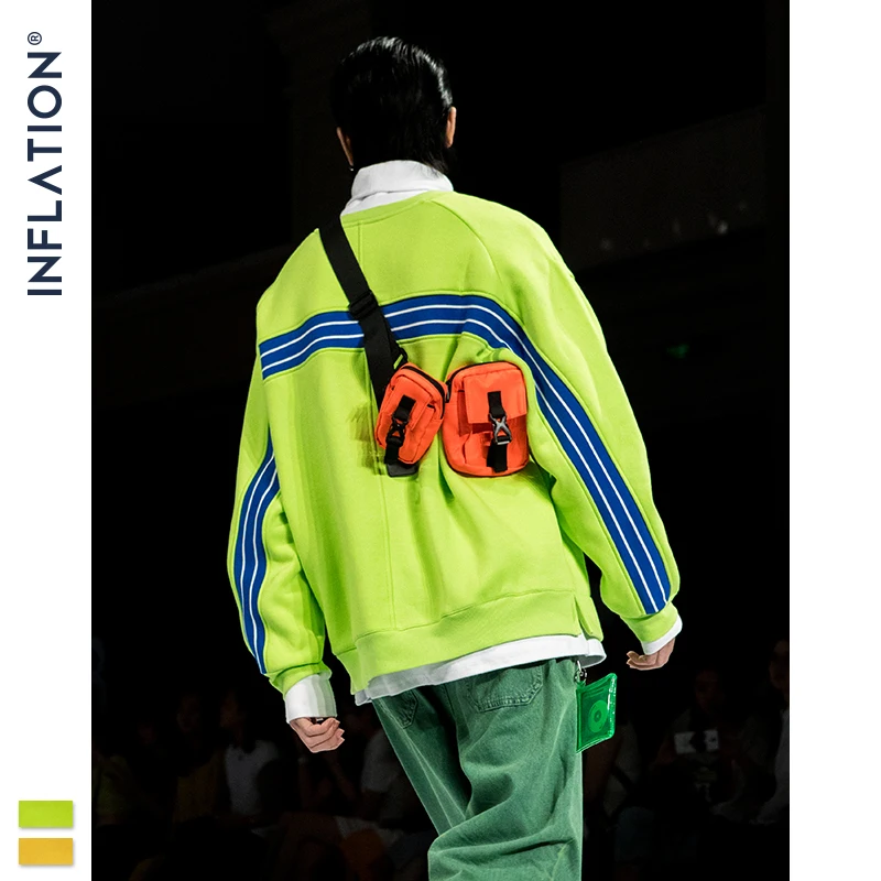 Мужская толстовка с полосками на спине INFLATION DESIGN, флисовая Свободная Толстовка на осень и зиму, уличная одежда 9648W