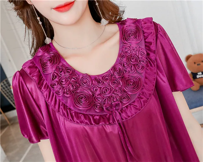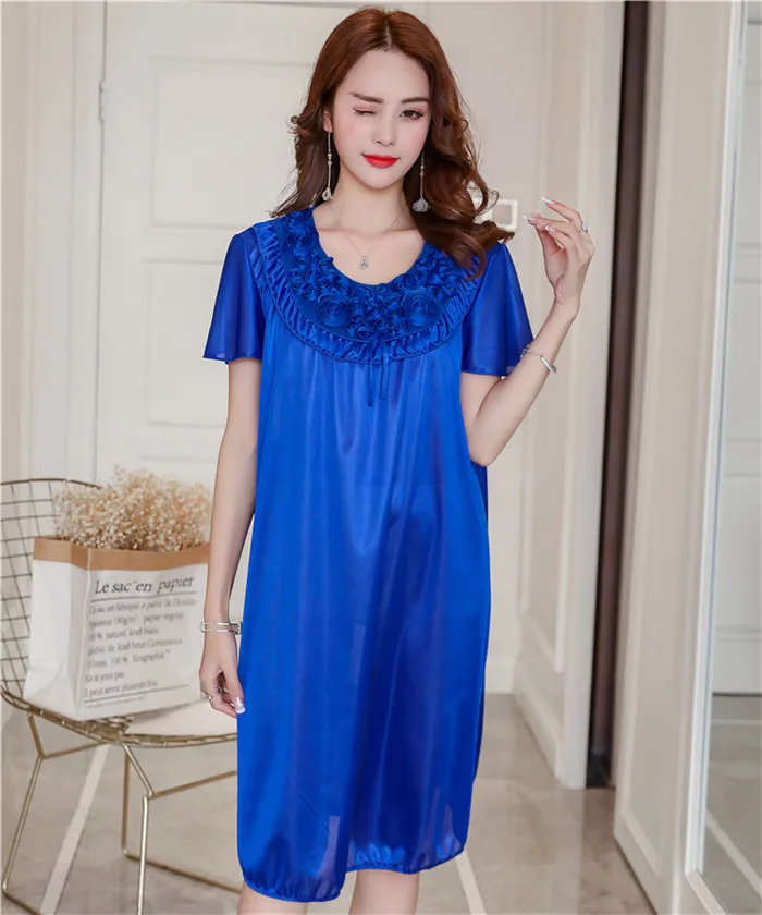Ночная рубашка из искусственного шелка, кружева, размера плюс, M-4XL