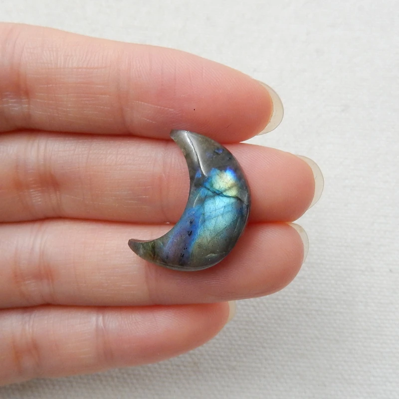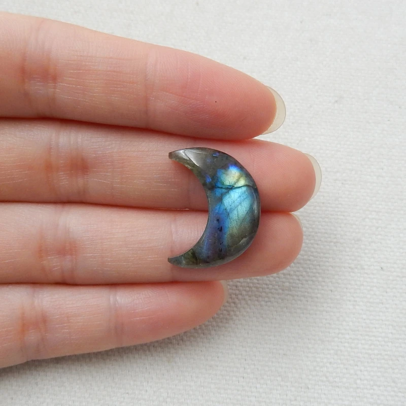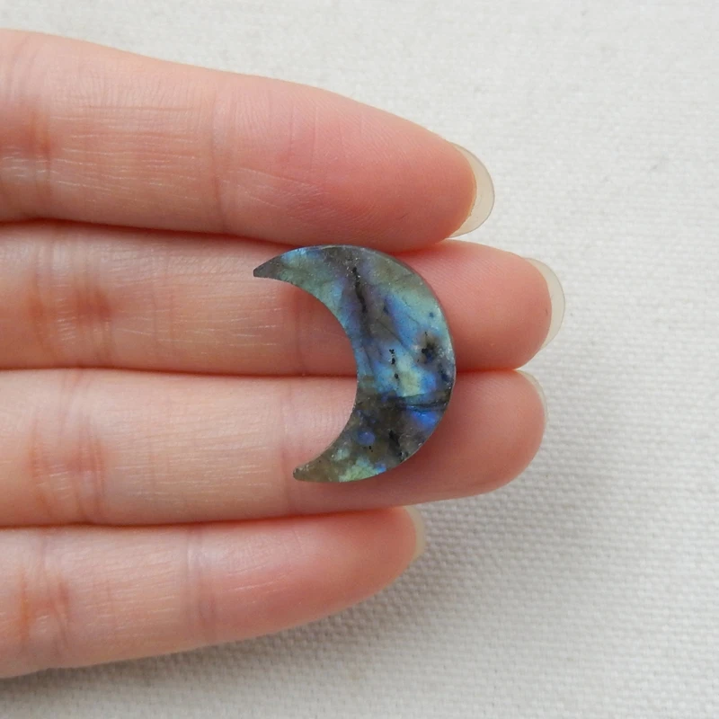 Натуральный камень кричащий Лабрадорит Луна Форма Драгоценный Камень Кабошон 22x15x5 мм 2,2 г