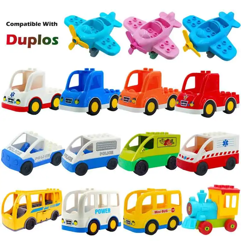 Совместимы с Duplos мультяшными автомобилями, самолетами, грузовиками, мотоциклами, Аксессуары для автомобилей, DIY, большие размеры, строительные блоки, кирпичи, детские игрушки, подарок