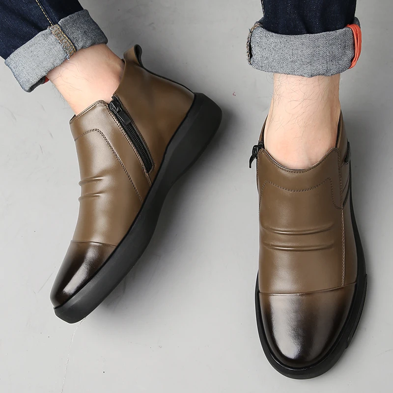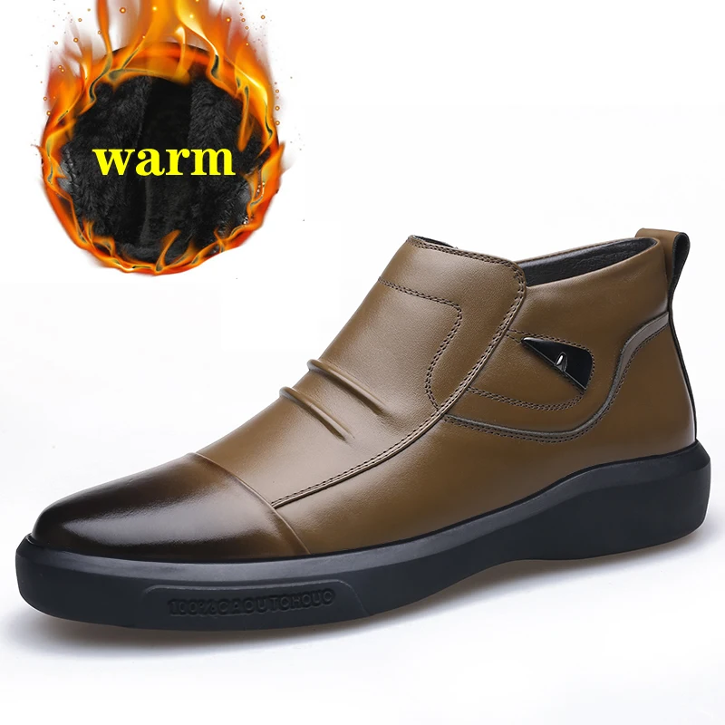 Мужские ботинки из натуральной кожи, зимние теплые ботинки с вельветом, ботильоны для мужчин, деловые модельные ботинки, 2020