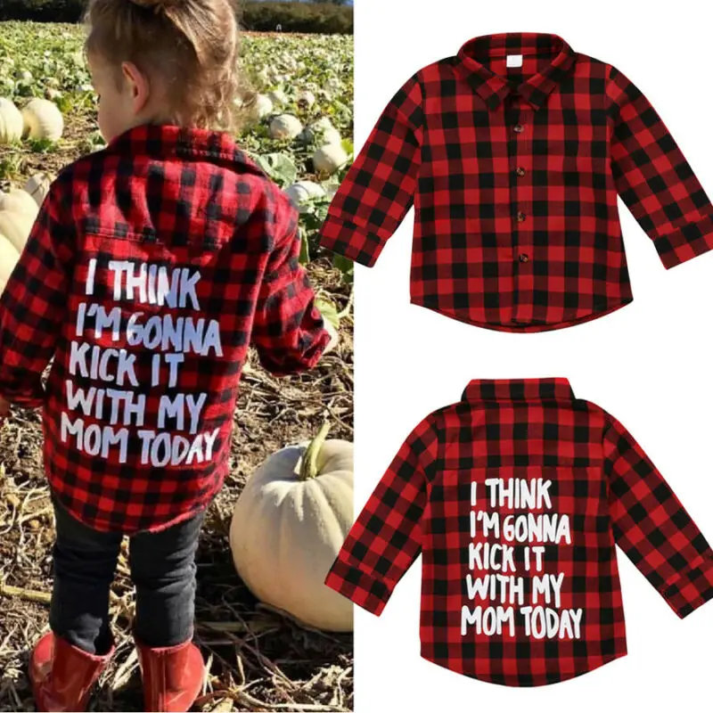 Одежда для маленьких мальчиков и девочек ясельного возраста клетчатые блузки с буквенным принтом, Рубашки Рубашка с длинными рукавами Топы, Модные осенние пальто унисекс От 2 до 7 лет