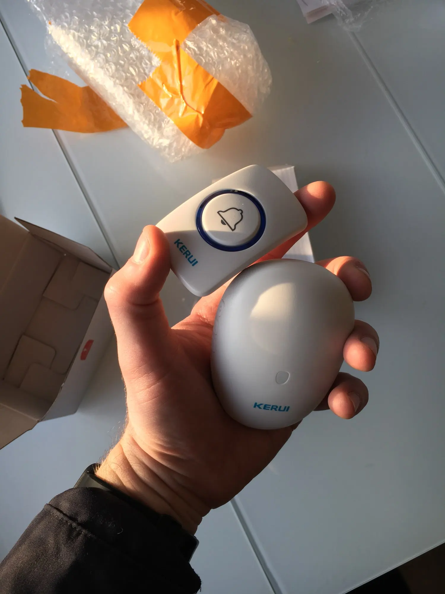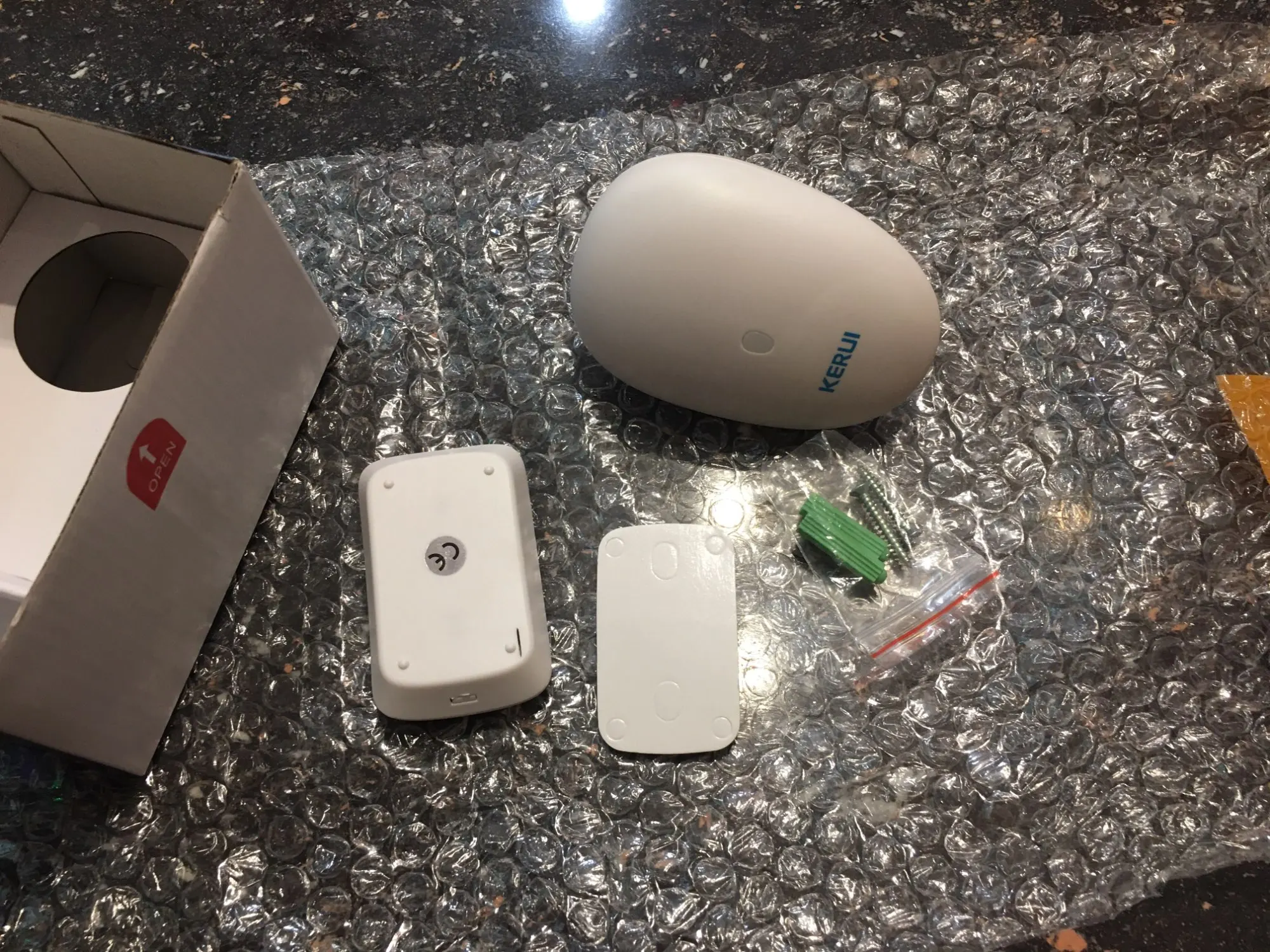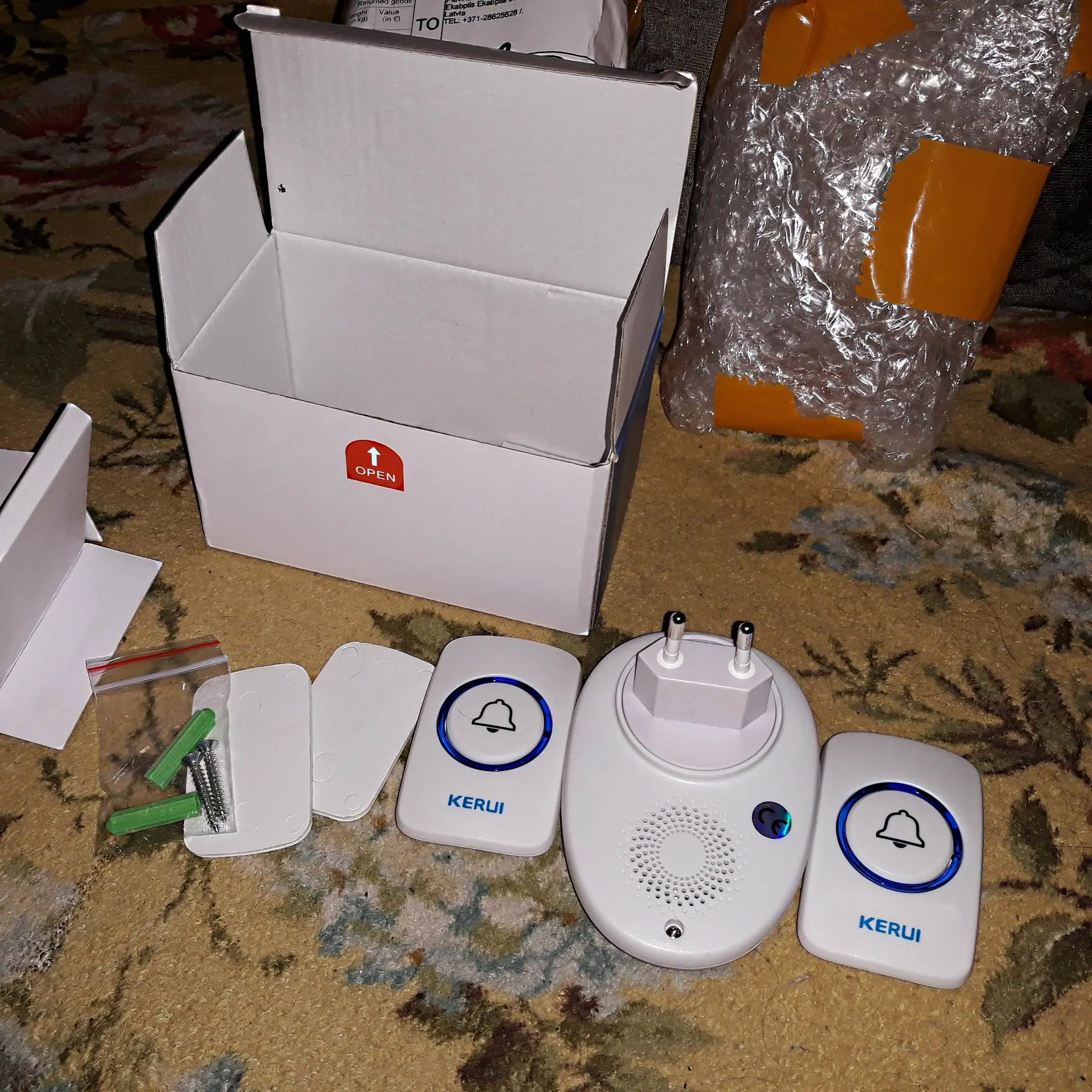 Все супер дійшло ціле ,запаковано пакет простий пупирка,картона коробка запчасти для крепежа звонок кнопка без батарейки ,2032 батарейка стала ,за 50днів до Київської області.Магазин та продавця рекомендую.