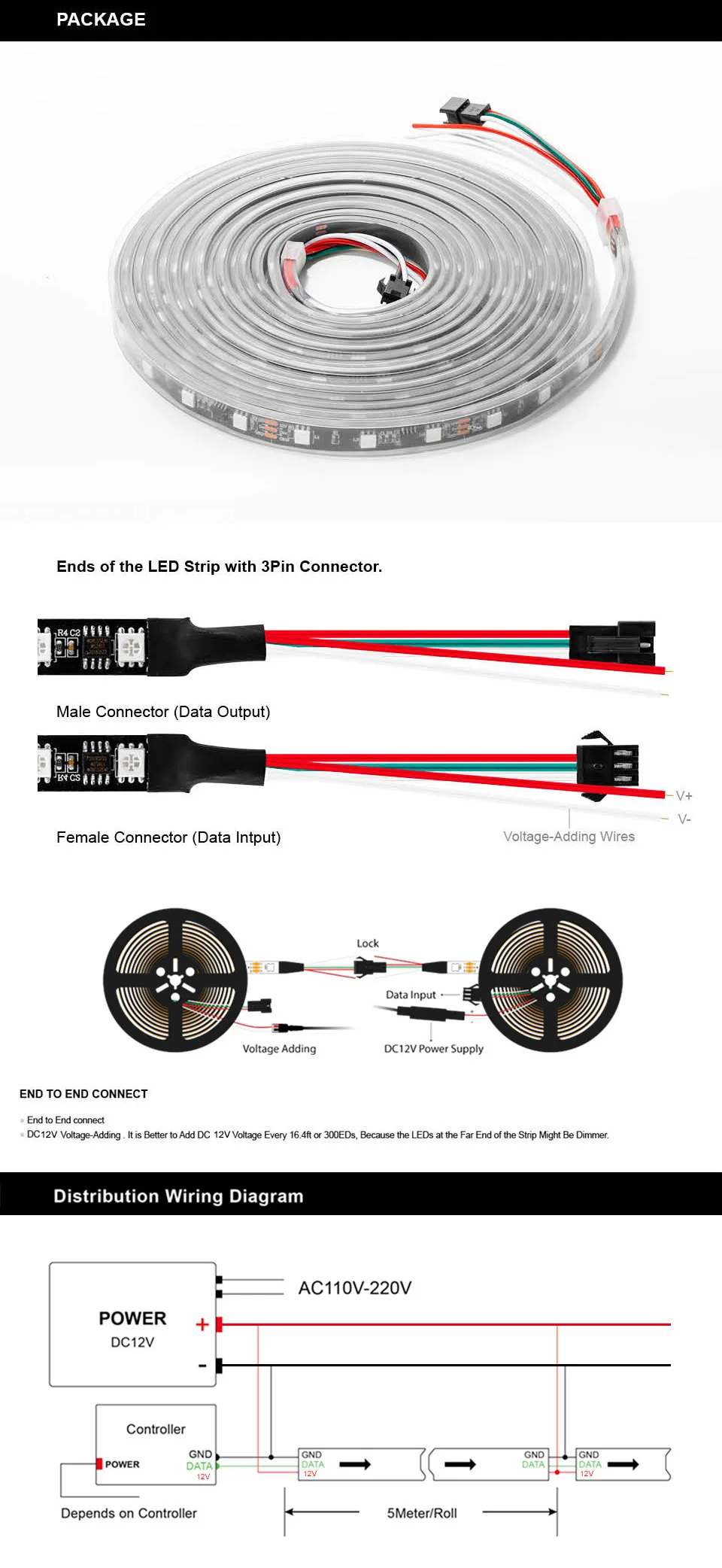 WS2811 должен использовать блок питания DC12V и светодиодный контроллер управления для управления!