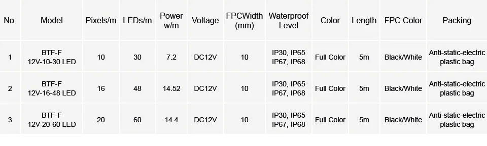 (3) IP67 --- силиконовая трубка, требуется повторное запечатывание после резки, уличное использование