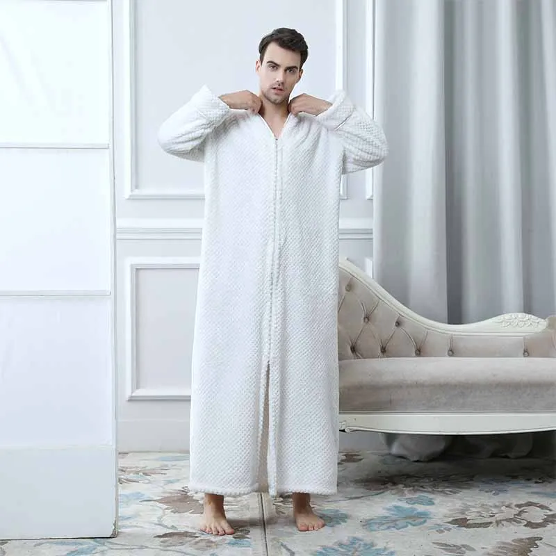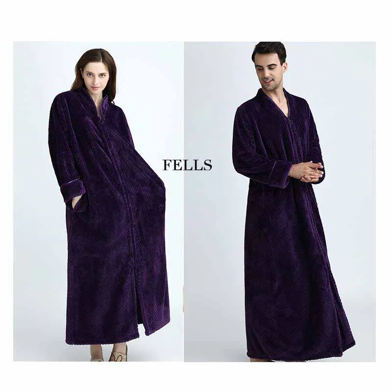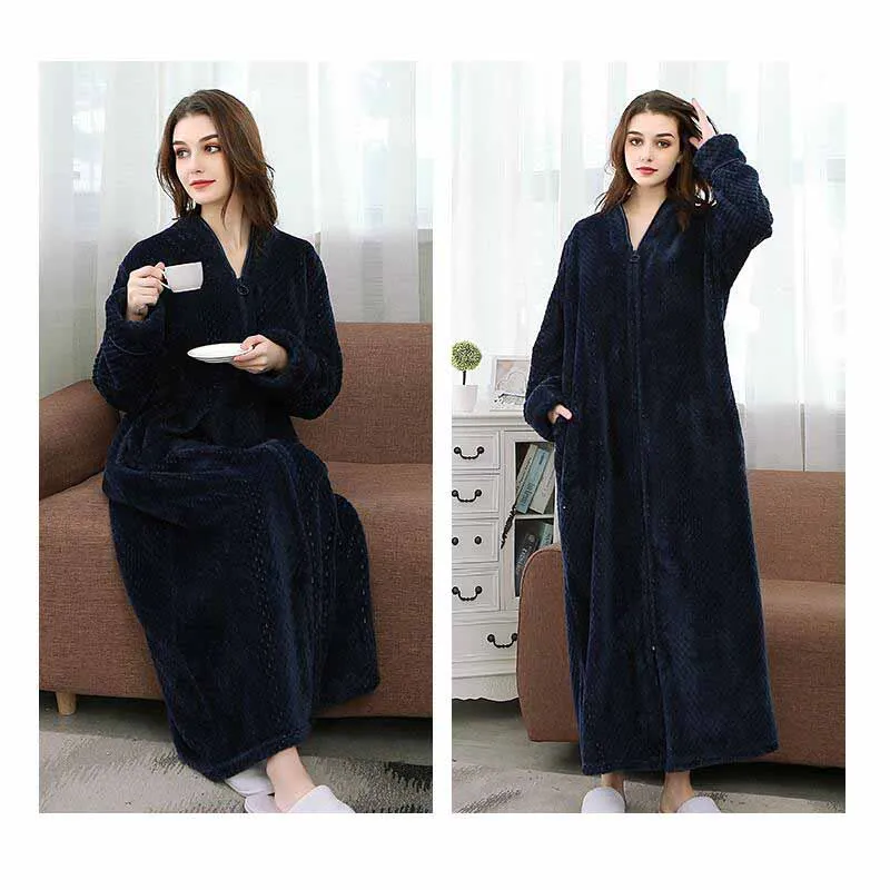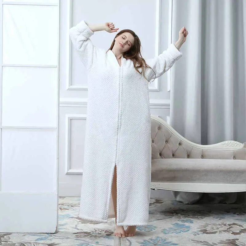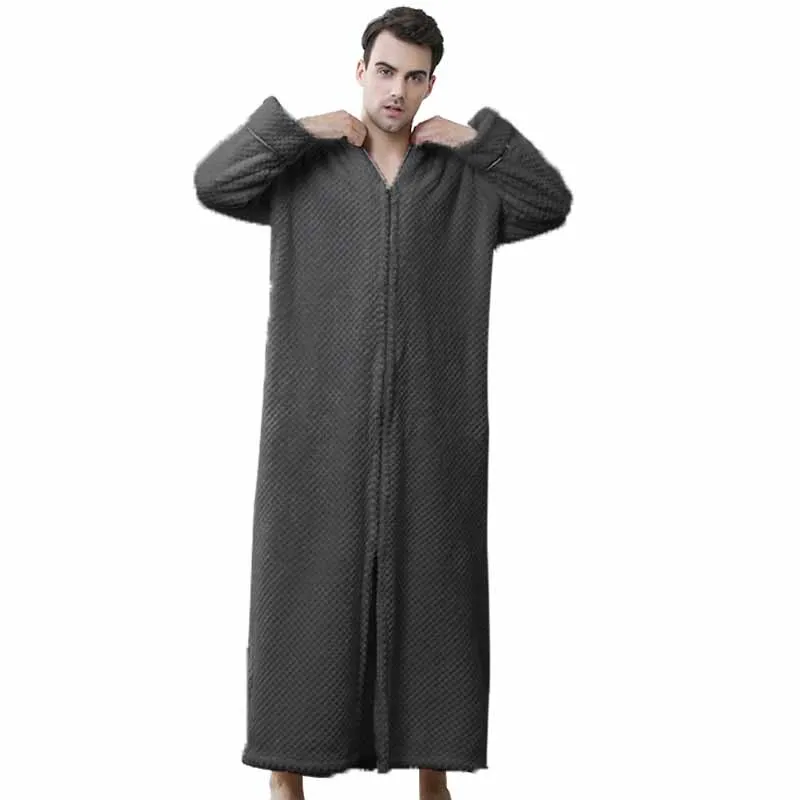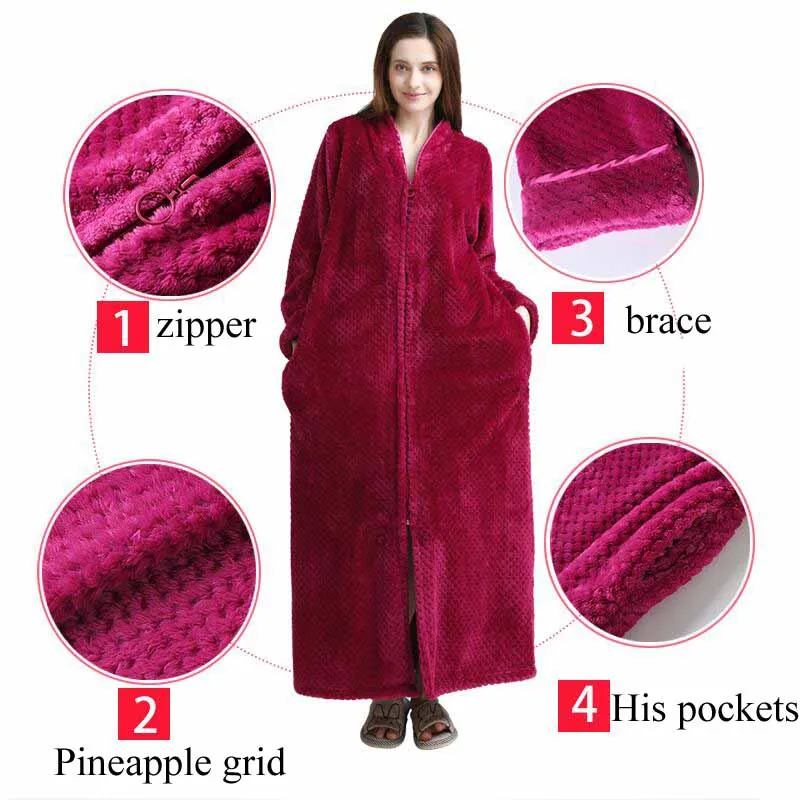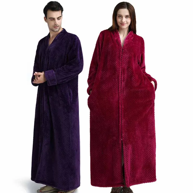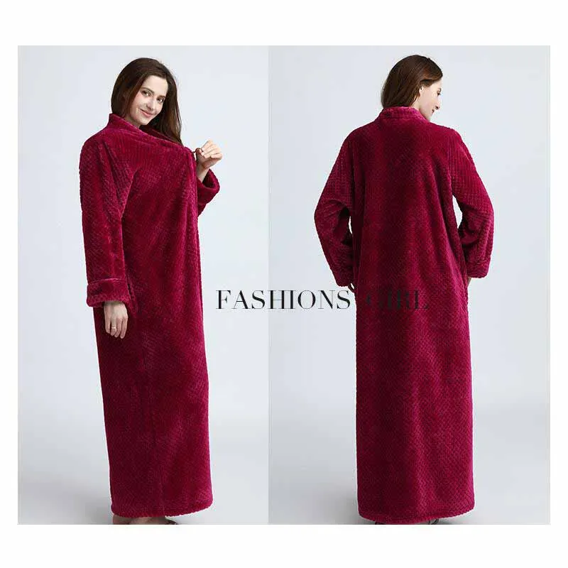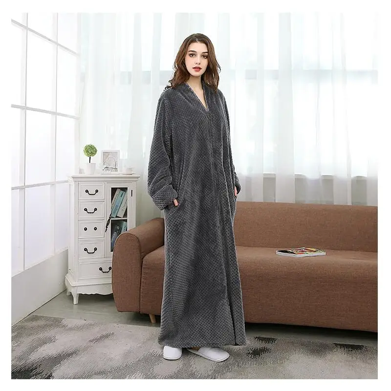 Зимний очень длинный теплый банный халат, одежда для сна большого размера, фланелевый пеньюар на молнии, банный халат из кораллового флиса, халат для подружки невесты