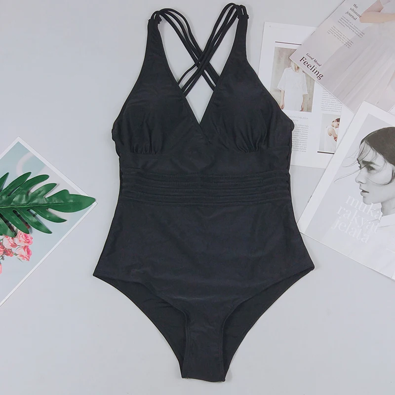 Сексуальный слитный купальник с рюшами, женский черный купальник, м...