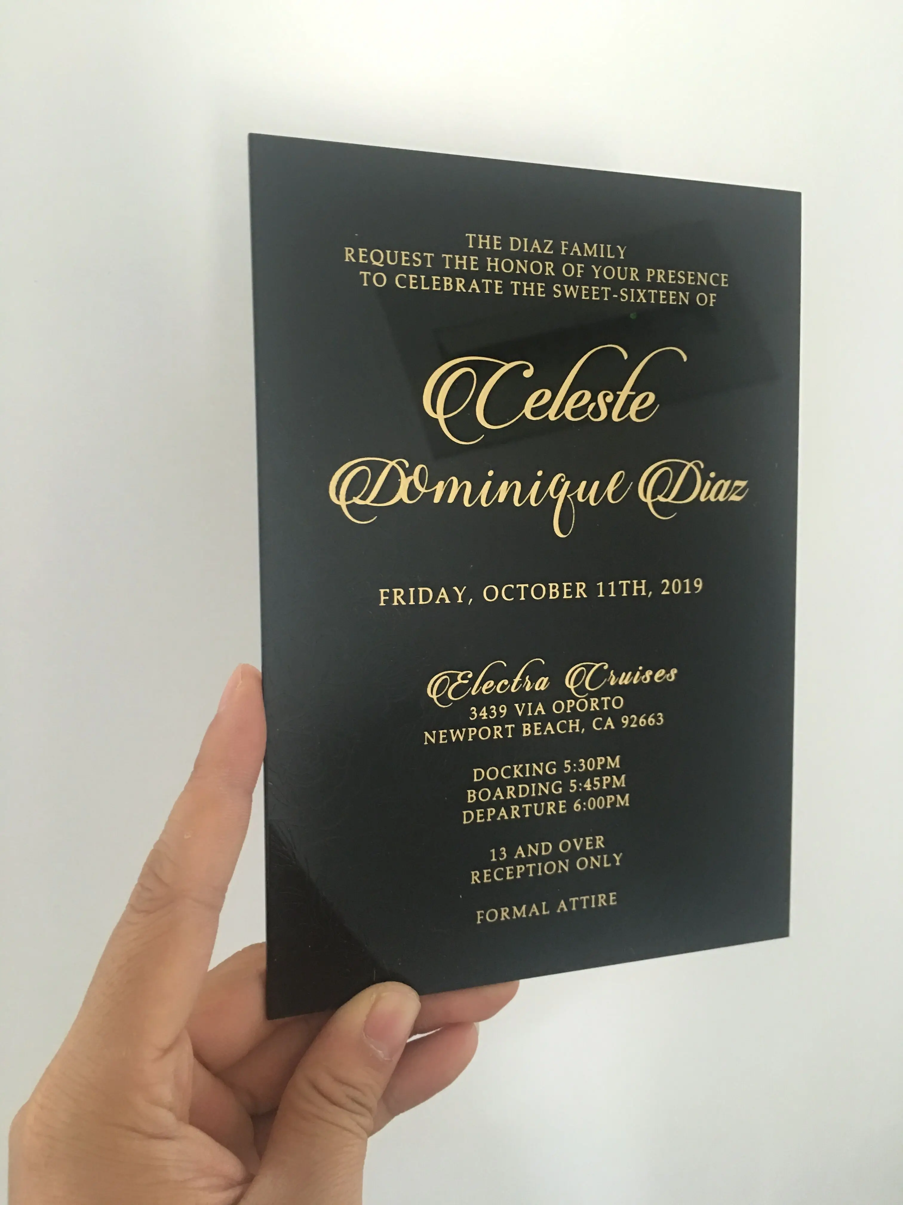 10 шт. Элегантные свадебные приглашения уникальные черные акриловые открытки с принтом