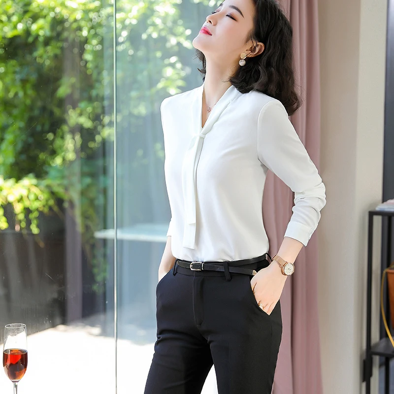 Женские рубашки с галстуком Lenshin, мягкая и яркая офисная одежда с бантом, женские топы, свободная Стильная сорочка