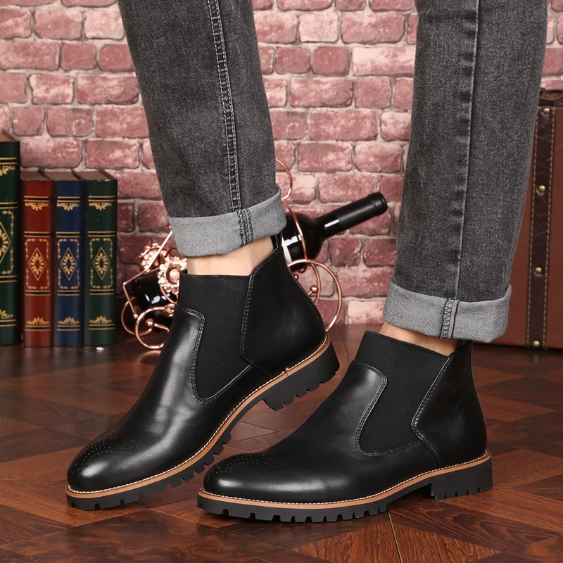 Мужские ботинки челси из натуральной кожи, зимняя рабочая обувь, винтажные классические ковбойские ботинки повседневные ботинки для езды на мотоцикле, JKPUDUN, 2019