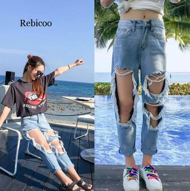 Женские джинсы для женщин, высокоэластичные джинсы, женские рваные джинсы с дырками, брюки-карандаш до щиколотки, Стрейчевые уличные брюки