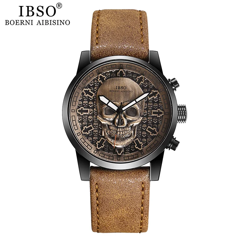 Мужские кварцевые часы с черепом IBSO, креативные кварцевые часы в стиле панк для мужчин, спортивные наручные часы в стиле хип-хоп