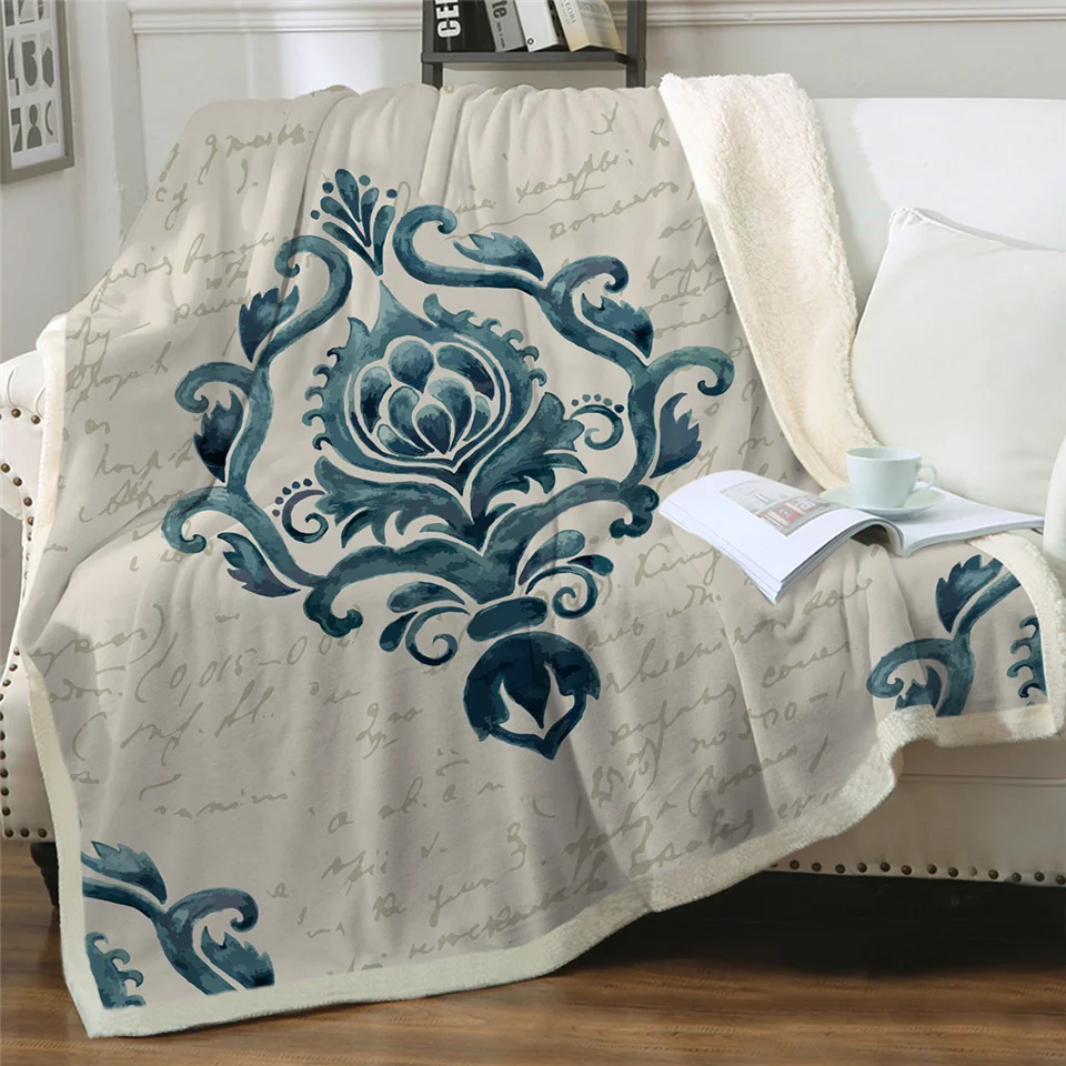 Покрывало BeddingOutlet, роскошное, классическое, шерстяное, флисовое, ретро, элегантное, на заказ, голубое, с цветочным принтом, мандалой