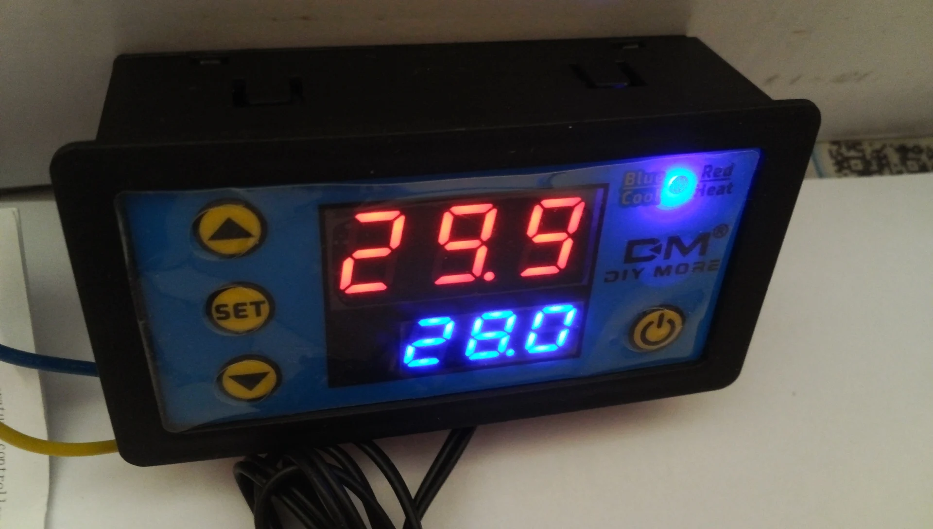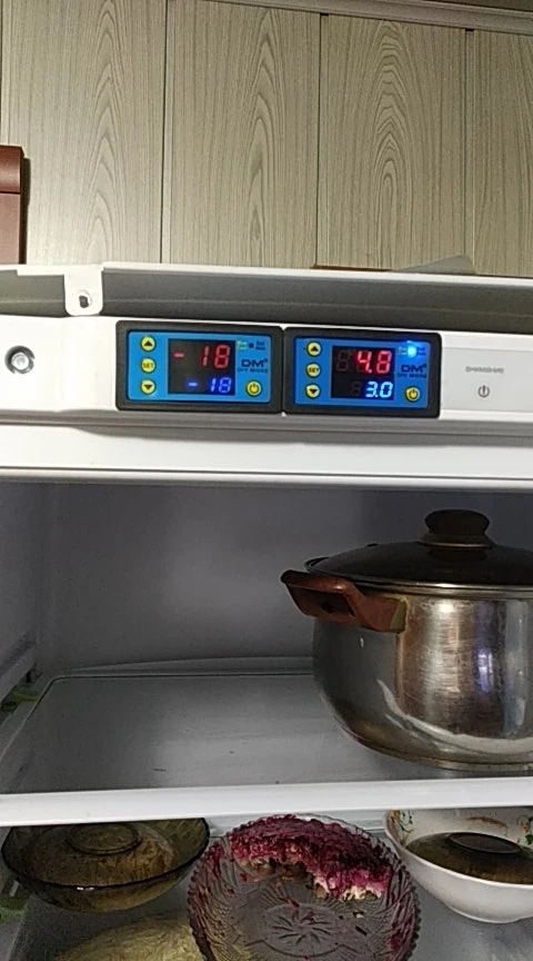 Характеристики:Диапазон контроля температуры: -50 ° C ~ 99 ° CТемпература точность управления: 0,1 ° CРабочий Источник питания: DC 12V DC 24V AC110V ~ 220VДатчик: NTC 10K 1 метр (с зондом)Размер изделия: 79,2 мм × 41,9 мм × 26,3 ммРазмер отверстия: 72,1 мм × 39,2 ммВес изделия: 50 г (12 В/24 В),59 г (110 В ~ 220 В) Панель управления и отображенияИнструкции по эксплуатации кнопок:1. Когда контроллер работает нормально, нажмите и немедленно отпустите кнопку «▲» один раз, чтобы отобразить значение настройки температуры; нажмите и немедленно отпустите кнопку «▼» один раз, чтобы отобразить значение настройки разницы температур и вернуться к нормальному температурному дисплею через 2 секунды. Статус.2. Задайте метод параметров:Пока контроллер работает нормально, нажмите и удерживайте кнопку «SET» более 3 секунд, чтобы войти в режим модифицированных параметров. Индикатор «Set» загорается, и цифровая трубка отображает код «F1» первого пункта меню. Нажмите кнопку «▲» или «▼», чтобы прокрутить вверх или вниз пункт меню и отобразить код пункта меню. Нажмите и удерживайте кнопку «S», чтобы отобразить значение настройки параметров текущего меню. Нажмите и удерживайте кнопку «SET», затем нажмите «▲» или «▼», чтобы вверх или вниз и Отобразите настройки параметров текущего меню. Нажмите и удерживайте кнопку «SET» и «▲» или «▼», чтобы быстро вверх или вниз и отобразить настройки параметров текущего меню. После установки нажмите и отпустите кнопку «», чтобы сохранить модификацию параметра и вернуться в нормальное состояние отображения температуры. При отсутствии операции в течение 10 секунд модификация параметра не будет сохранена, и нормальное состояние дисплея будет возвращено.Если во время сохранения параметра возникла ошибка, отображается «Er», и через 3 секунды он возвращается в нормальное состояние дисплея.3. Данные системы ремонтаКогда устройство включено, сначала проверьте параметры. Это правильно. При обнаружении ошибки отображается «Er». Нажмите любую клавишу в это время, чтобы восстановить настройки параметров по умолчанию и нормально работать. В это время рекомендуется сбросить параметры. Инструкции по эксплуатации и эксплуатации:Когда контроллер находится в нормальных рабочих часах, нажмите и удерживайте кнопку «» более 3 секунд, чтобы выключить контроллер; Когда контроллер выключен, нажмите и удерживайте кнопку «» более 3 секунд, чтобы открыть контроллер.Когда контроллер работает нормально, цифровая трубка отображает значение измерения температуры тока и автоматически переключается между режимами нагрева и охлаждения.Когда измеренная температура ≥ заданное значение температуры + заданное значение перепада температур попадает в состояние охлаждения, индикатор «Cool» загорается, реле охлаждения, как правило, закрывает контакт; Индикатор «Cool» мигает, указав, что устройство охлаждения находится в состоянии защиты от задержки нажатия, Когда измеренная температура ≤ заданное значение температуры, индикатор «Cool» выключен, и нормально открытый контакт реле охлаждения открыт.Когда измеренная температура ≤ заданное значение температуры-заданное значение температуры входит в состояние нагрева, индикатор «Heat» загорается, реле для нагрева, как правило, открывается контакт; когда измеренная температура ≥ заданное значение температуры, индикатор «Heat» выключен, реле дл
