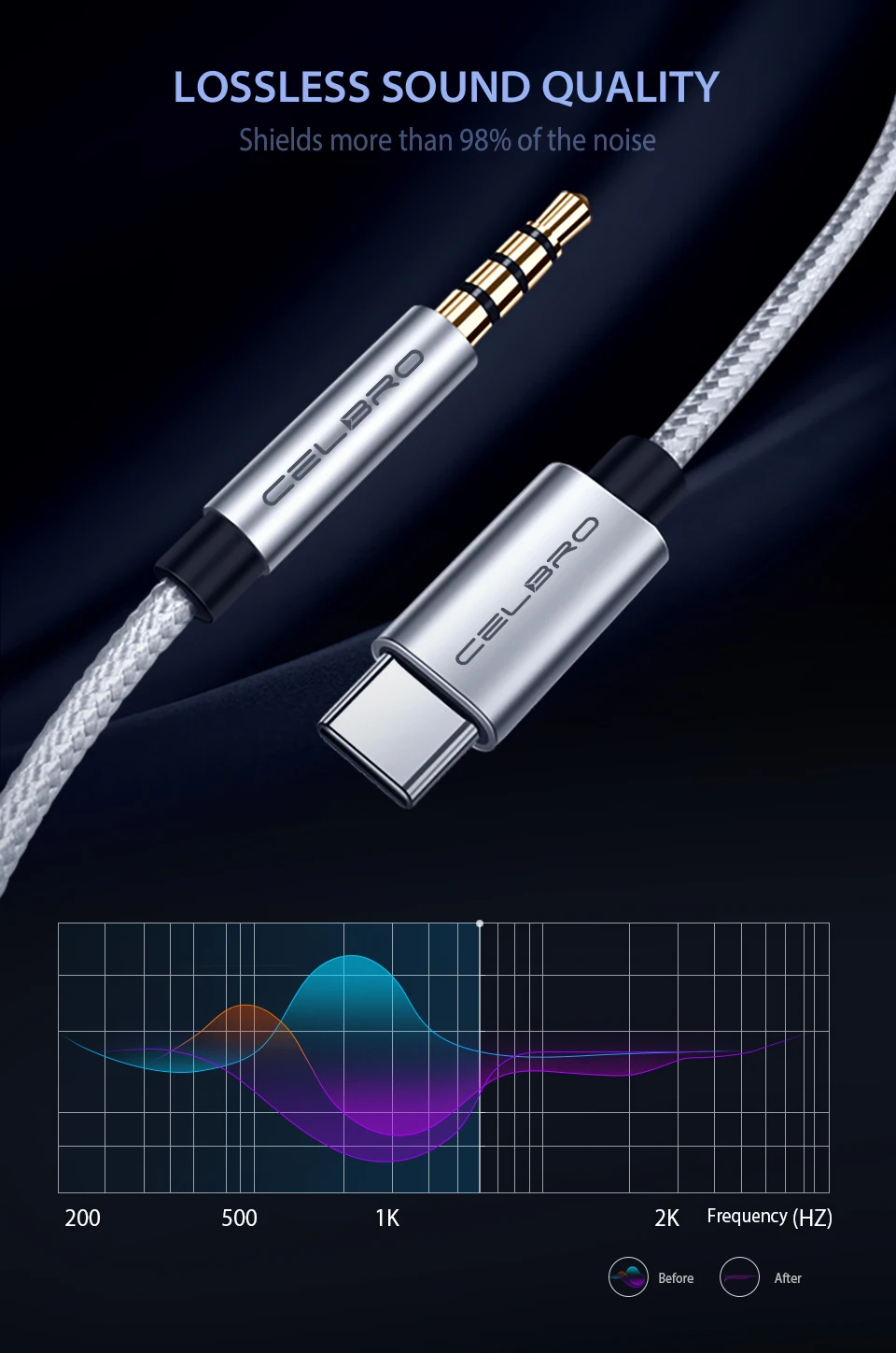 Fetures 1USB-C Male To 3.5mm Male Cable For Tablet bluetooth speakers