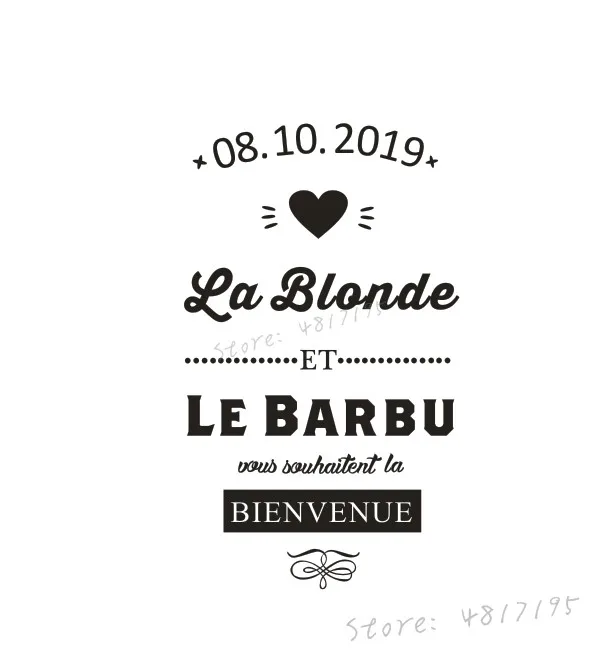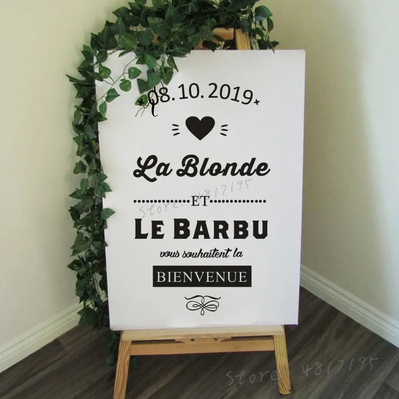 Виниловая Зеркальная Наклейка La блонд et le barbu, индивидуальная Дата, Свадебный знак, наклейки, французская наклейка на свадебную церемонию, роспись, искусство AZ939