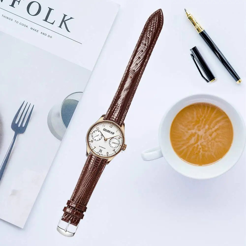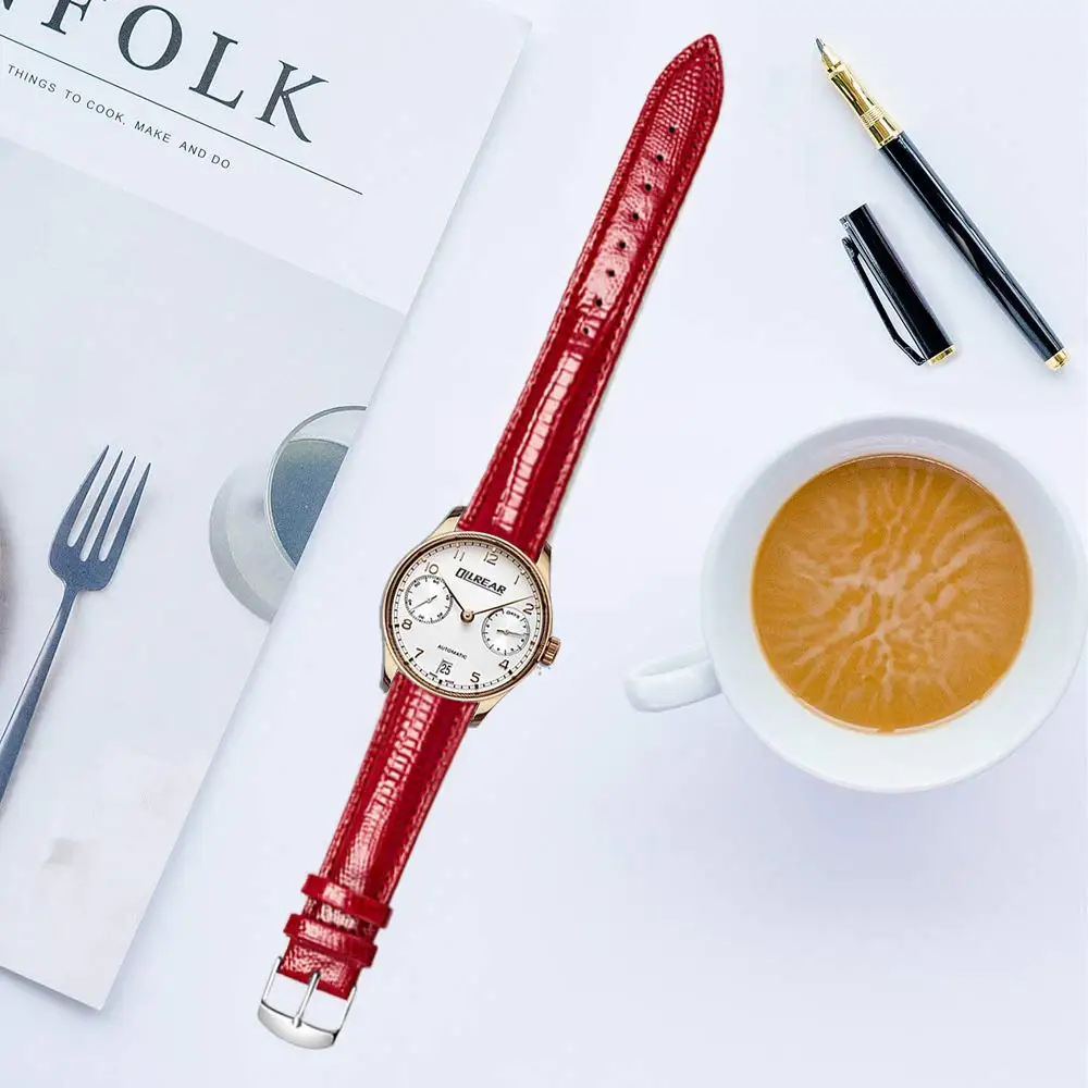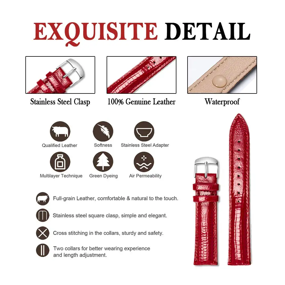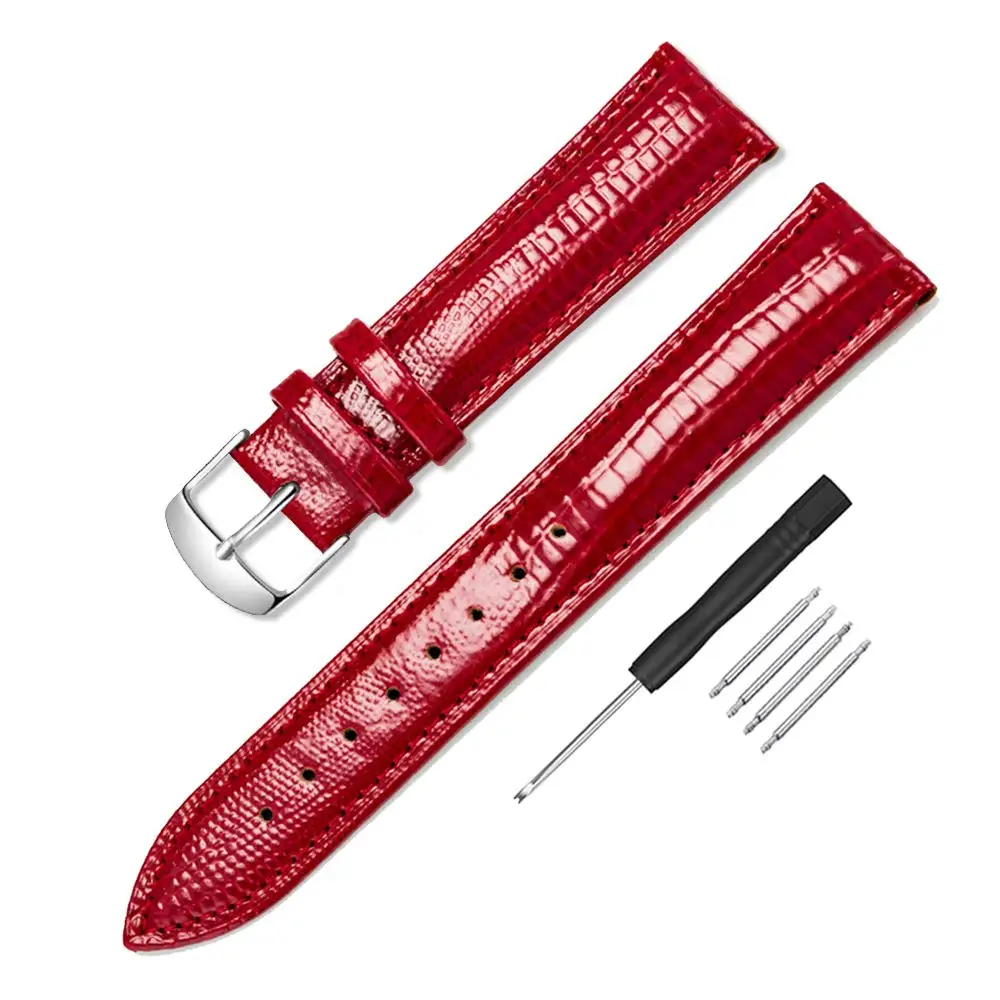 Ремешок из натуральной кожи для наручных часов, цветной универсальный браслет с пряжкой из нержавеющей стали, 14-20 мм, с инструментами