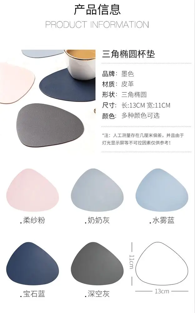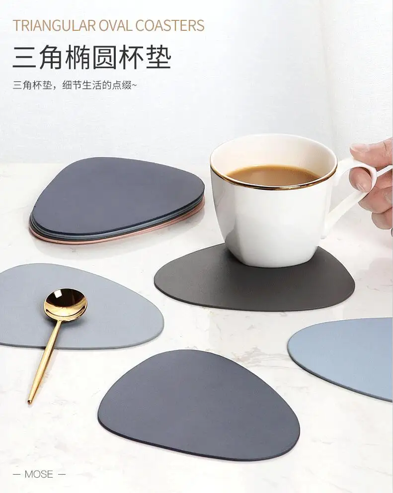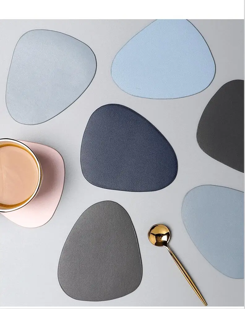 Овальный подставка из искусственной кожи Коврик для чашки, изоляционный коврик, черный, синий, настольный декоративный коврик для горячих напитков