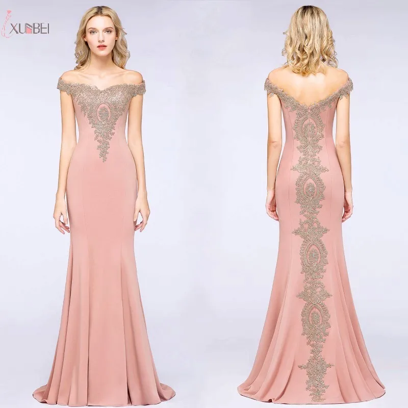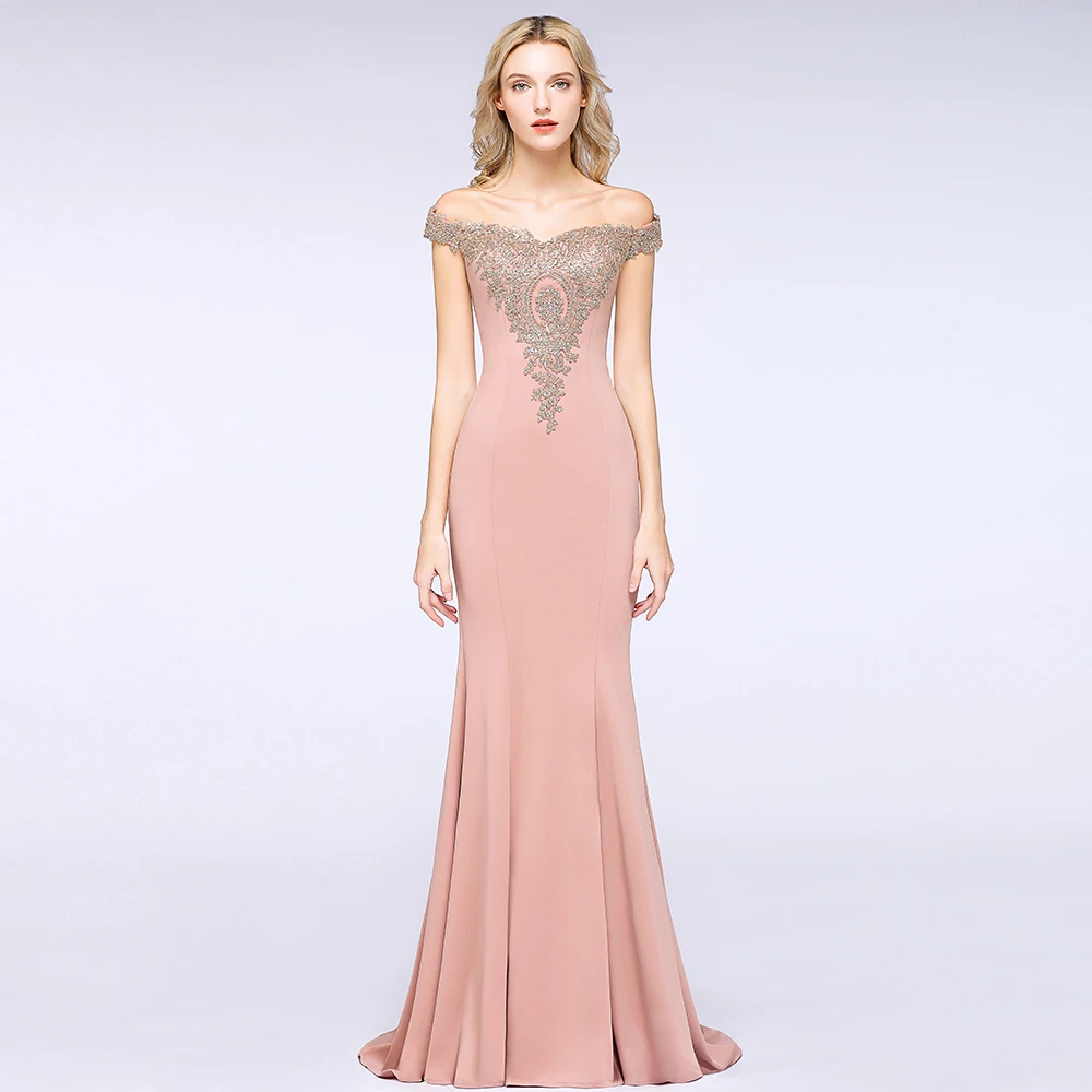 Длинное вечернее платье-Русалка цвета розового золота, элегантное официальное платье с кружевной аппликацией и открытыми плечами, без рукавов, вечернее платье