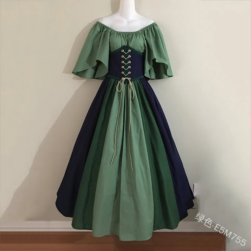 Ренессанс, женские модные элегантные длинные платья, сшитые цвета, половина рукава, определенная Талия, Ретро платье, карнавальные костюмы, средневековое платье