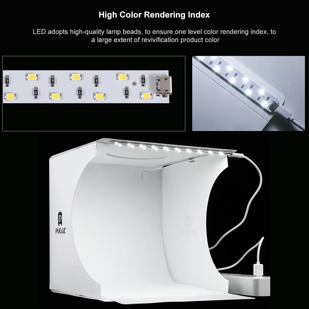 light box FeatureLEDTabletop shooting lighting kit Black/white photo backdrop