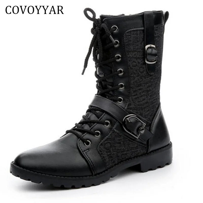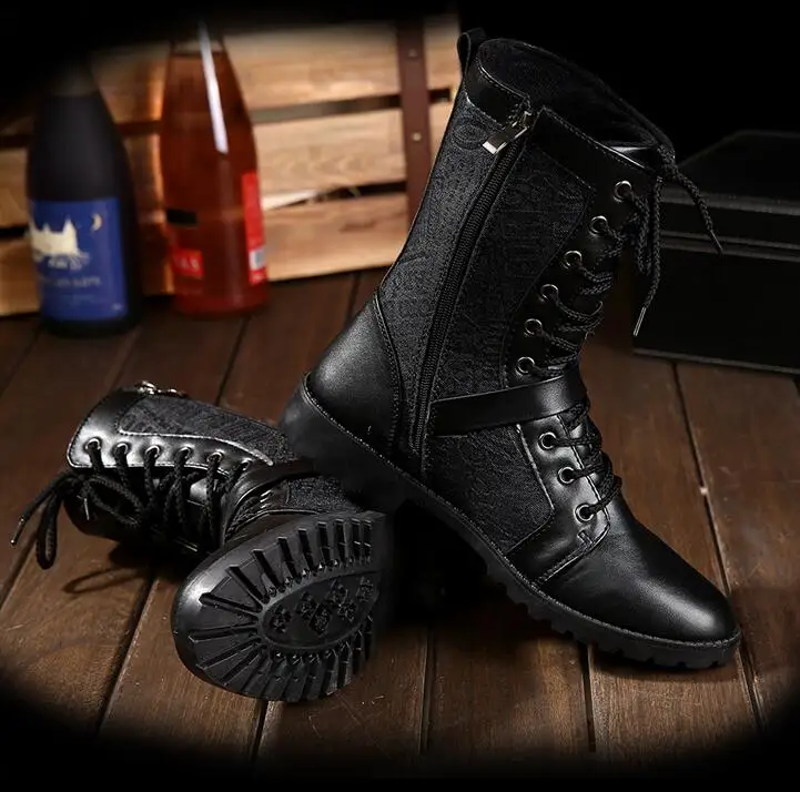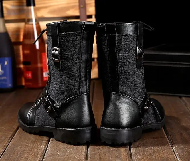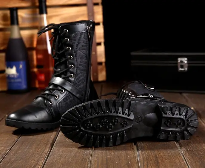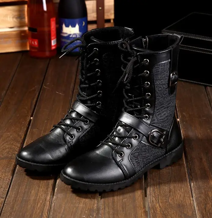 Осень-зима 2021 мужские ботинки theagдает с пряжкой Британский рыцарь военные ботильоны высокие Лоскутные черные мужские ботинки MBS670