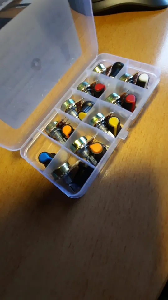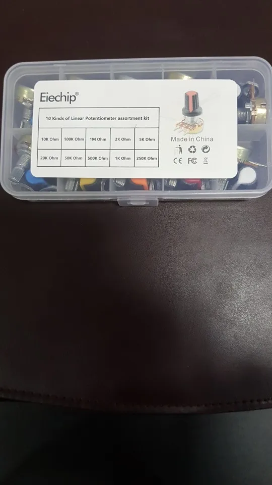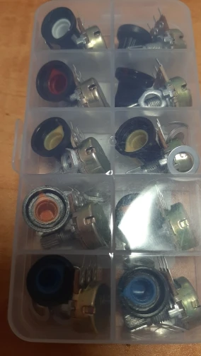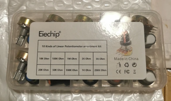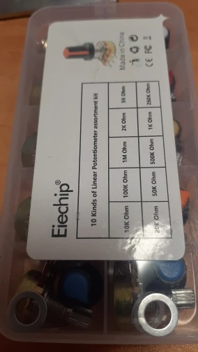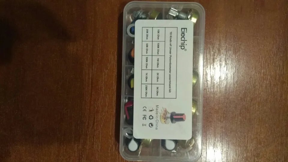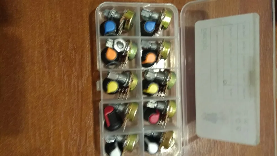 Продукт соответствует описанию. Все потенциомерты рабочие. Номиналы соответствуют заявленным плюс-минус 10 процентов. Единственно 10 кОм оказался на 13 кОм. Регулировка от минимума до максимума 1 полный оборот. Все болты и шайбы для крепления в наличии. Повреждений нет. Доставка в Минск заняла 30 дней.