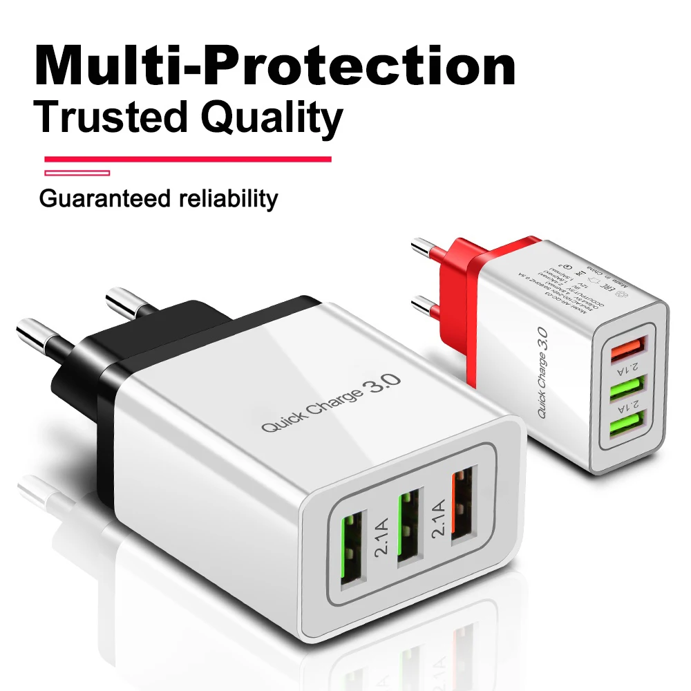 Зарядное устройство Olaf 18 Вт, быстрая зарядка 3,0, 3 USB, для iPhone X, XS, 7, Samsung, Huawei P30, Xiaomi QC 3,0, настенное, для путешествий, адаптер для ЕС, США